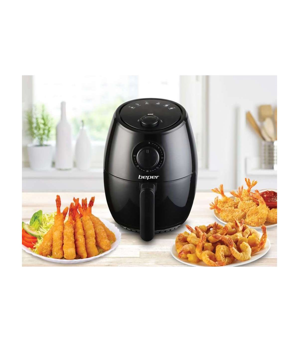Õhupraad on kõige tervislikum alternatiiv traditsioonilisele praadimisele, kuna see võimaldab praadida ilma väga vähese õlita või ilma. Ideaalne ka röstimiseks ja grillimiseks. ABS-korpuse ning 2-liitrise mittenakkuvate mahutite ja riiuliga, mis on hõlpsasti puhastatavad. Töövalgus ja 2 nuppu temperatuuri reguleerimiseks kuni 200 ° C ja programmeeritava taimeri jaoks kuni 30 minutit automaatse väljalülitamisega. Kaitse ülekuumenemise eest.
