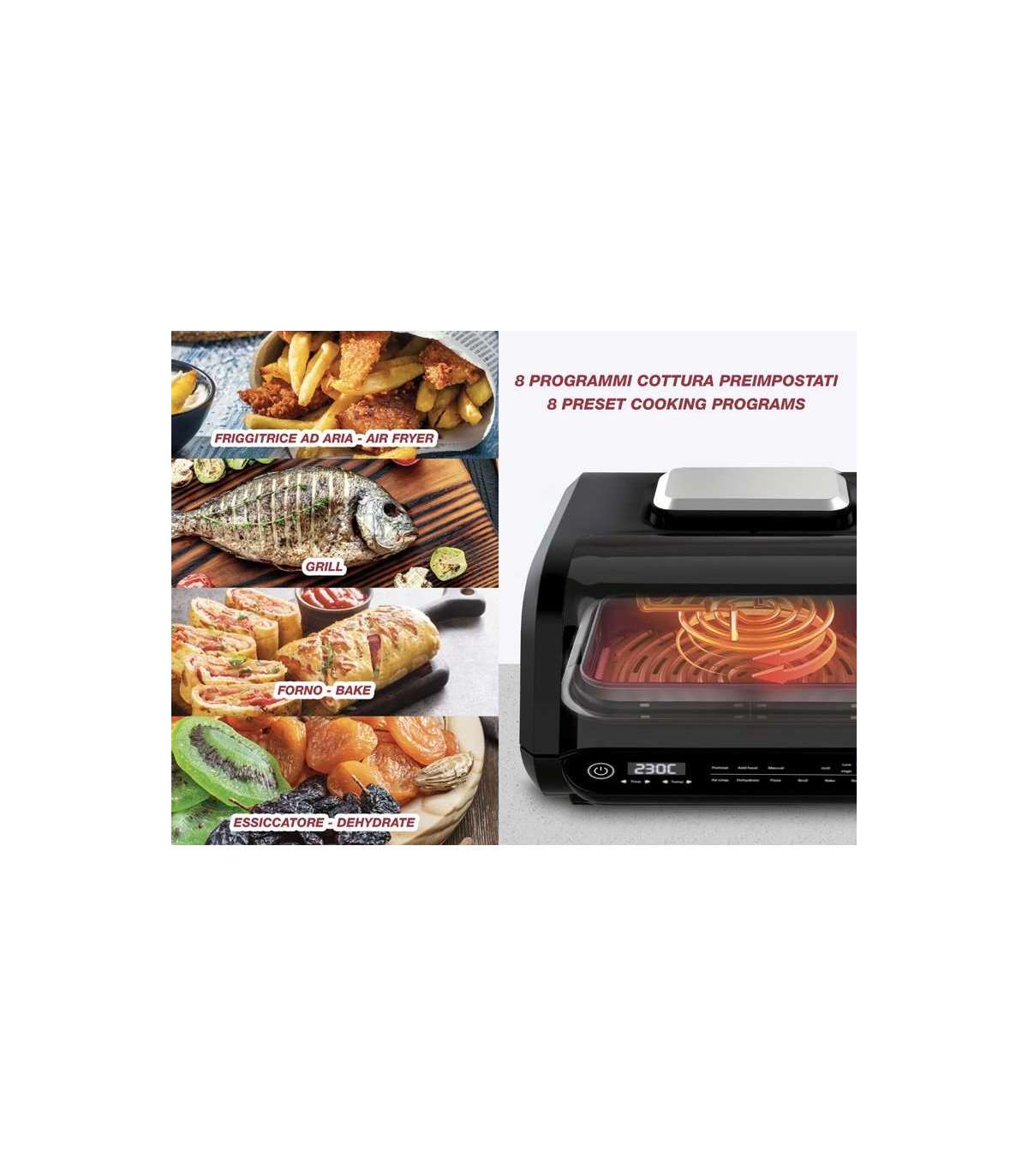 8 küpsetusprogrammi: õhuga krõbedaks küpsetamine, röstimine, grill (4 taset), kuivatamine, küpsetamine, pitsa, praadimine ja käsitsi režiim.