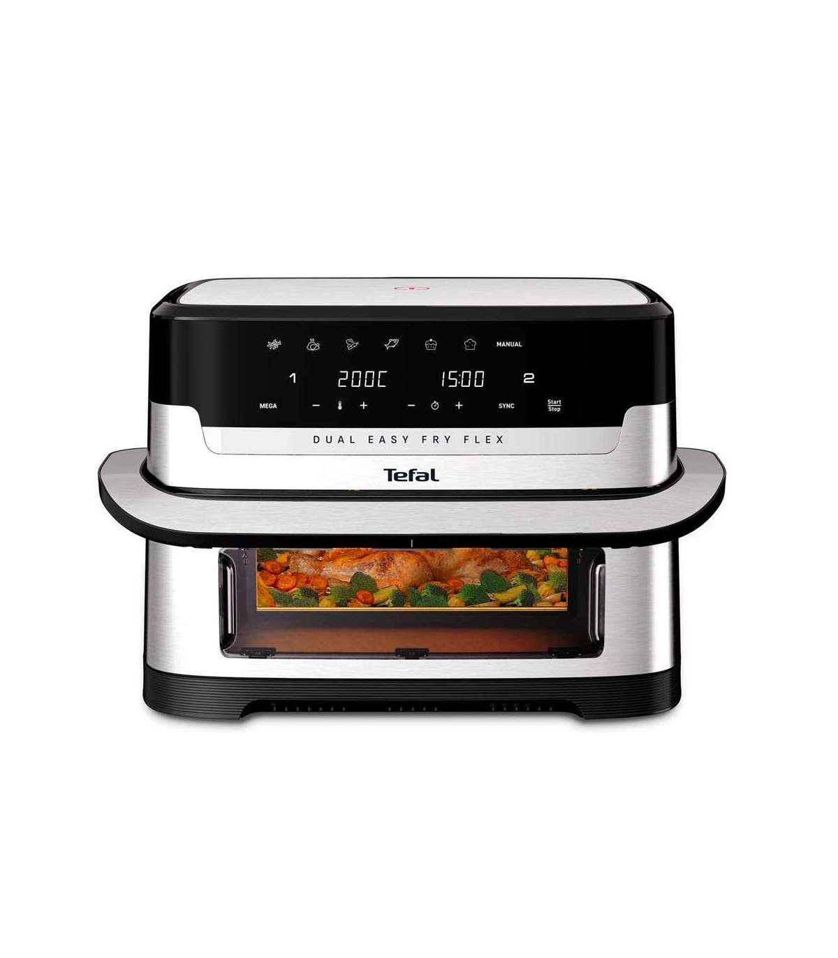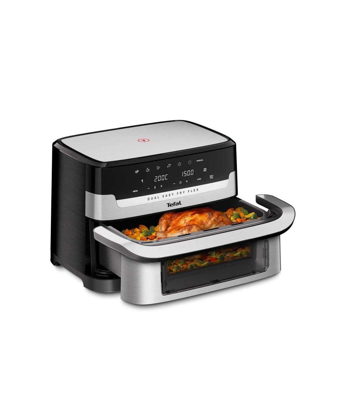 Tefal Dual Easy Fry Flex EY922D 9 L Stand-alone Hot air fryer Black, Stainless steel