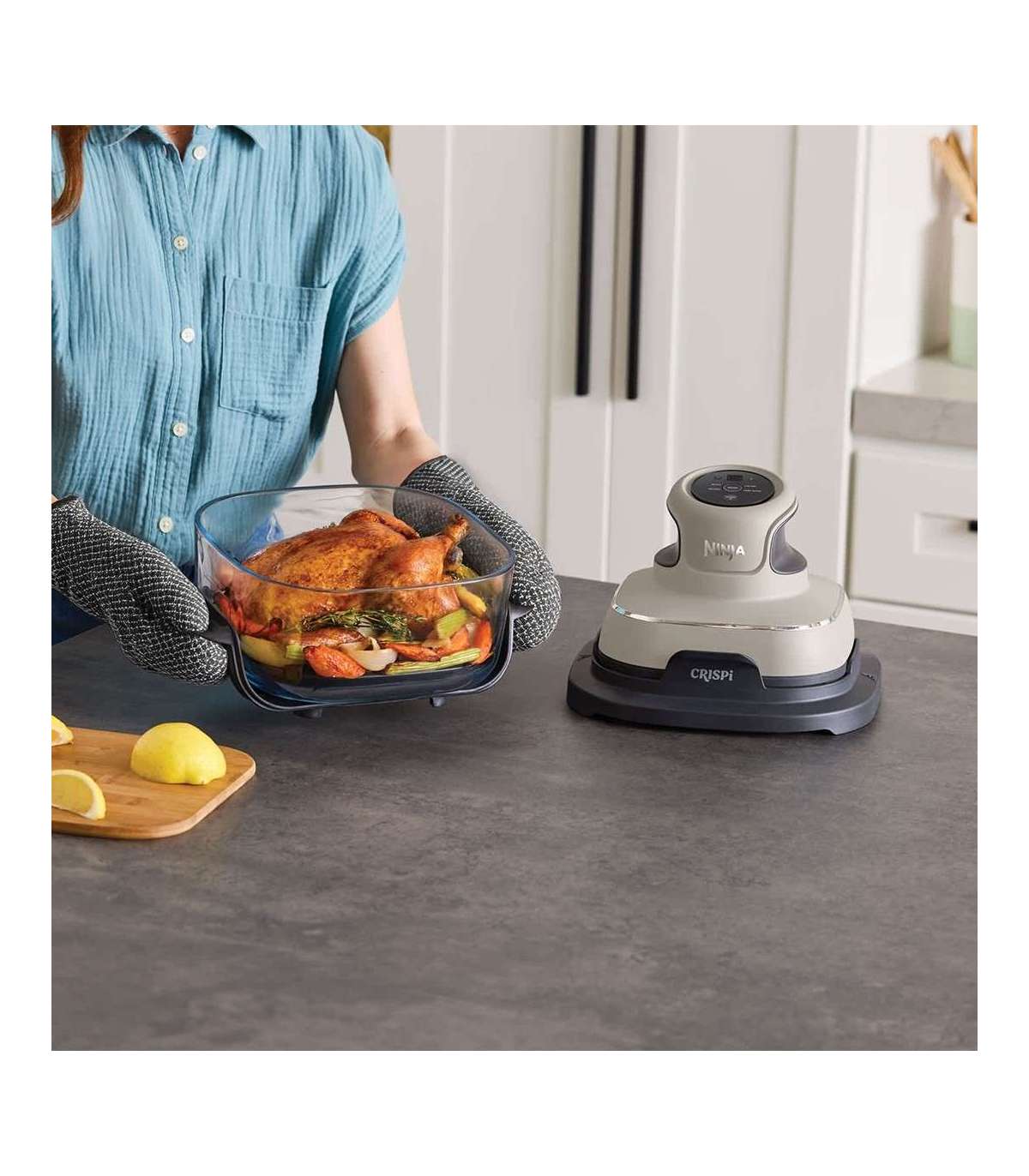 Ninja CRISPi Single 3.8 L 1700 W Hot air fryer Grey, Stone colour, Transparent