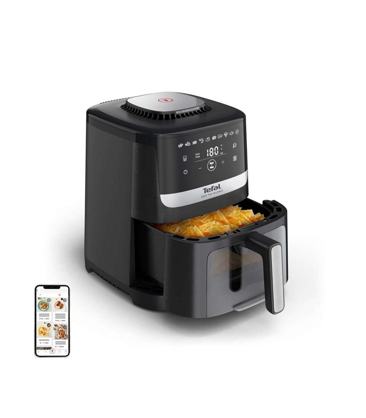 Tefal Easy Fry Silence EY5568E0 fryer Single 5 L Stand-alone Hot air fryer Black, Stainless steel