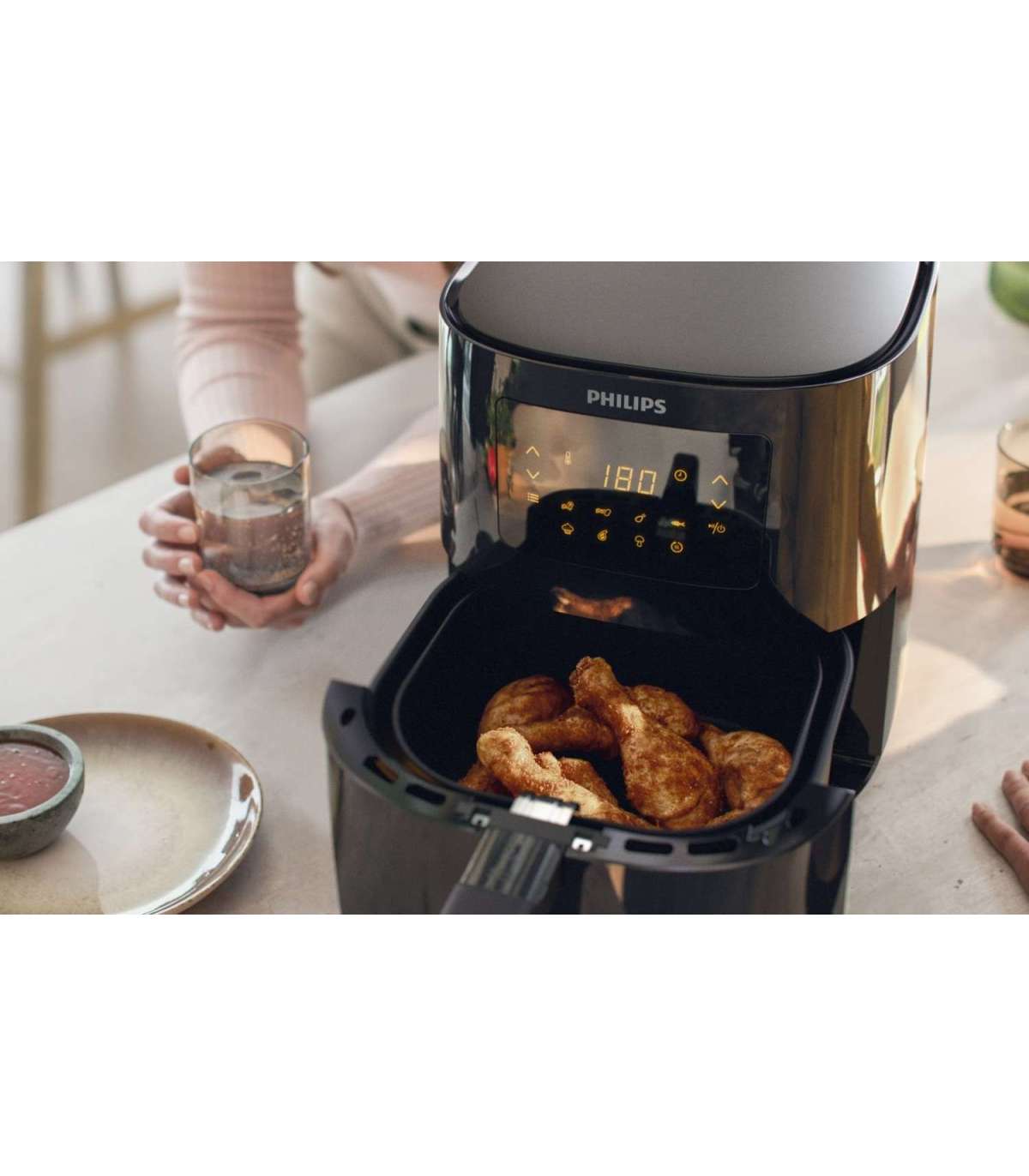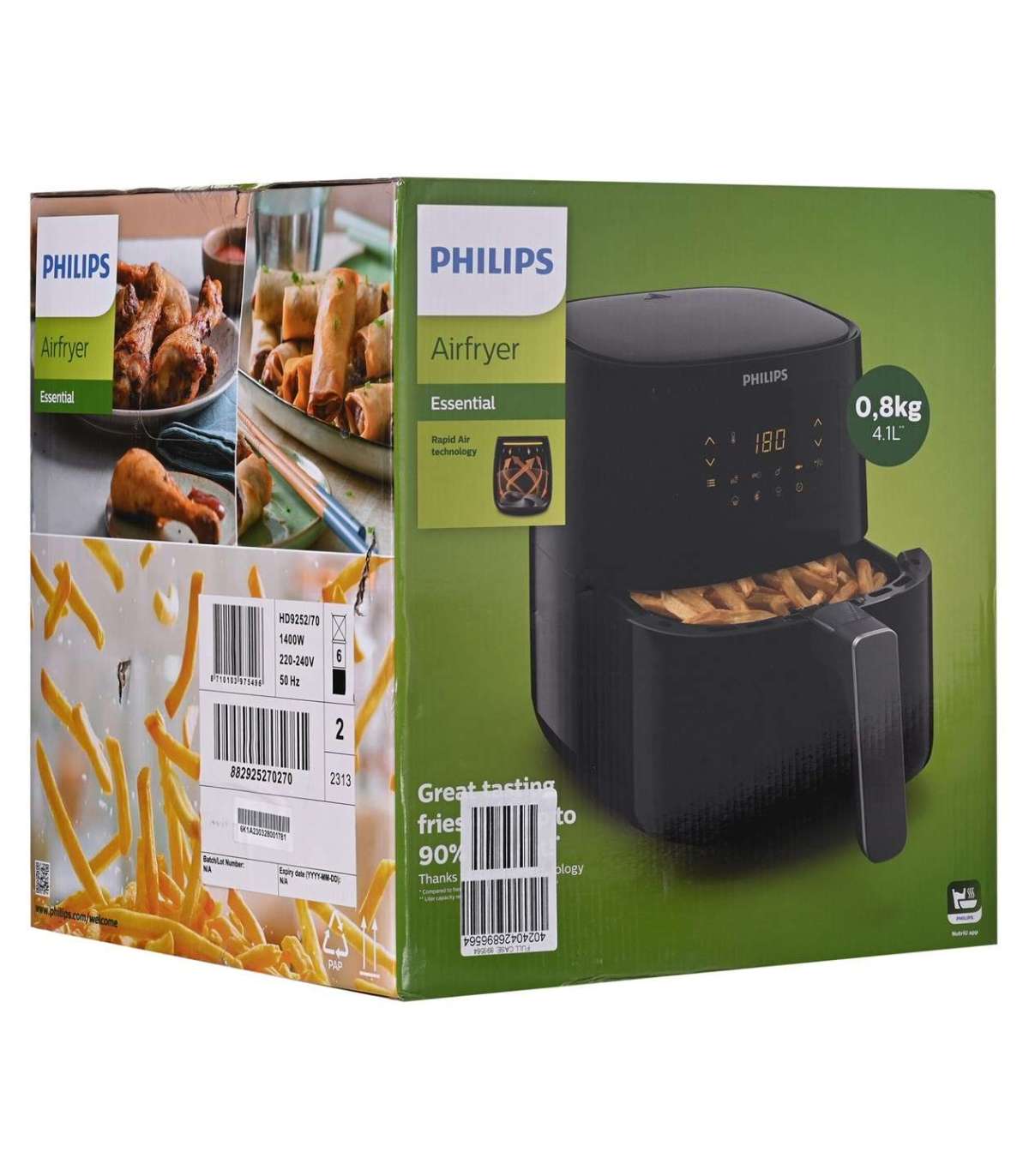 Philips Essential HD9252/70 fryer Single 4.1 L Stand-alone 1400 W Hot air fryer Black, Silver