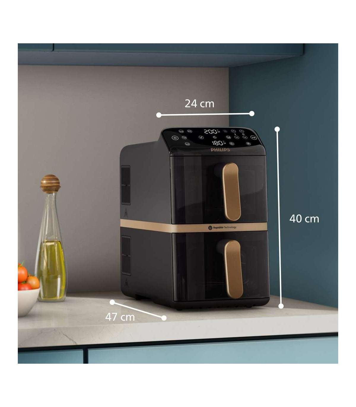 Philips 4000 series Dual Stack Airfryer Vertical Basket 10L Double Stand-alone 2750 W Hot air fryer Black