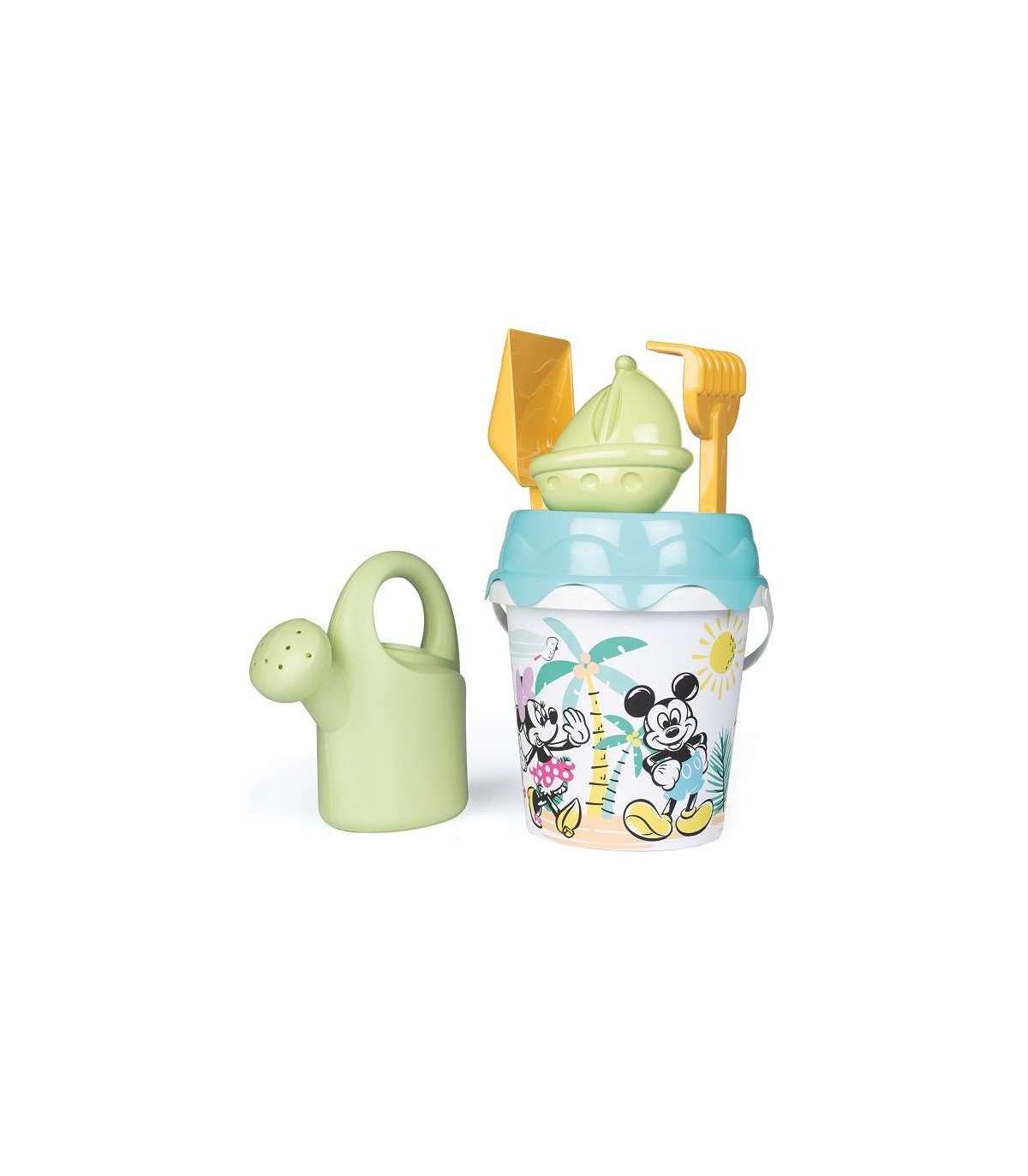SMOBY зелёное ведёрко с Микки и Минни, с аксессуарами для песка и лейкой из биопластика
