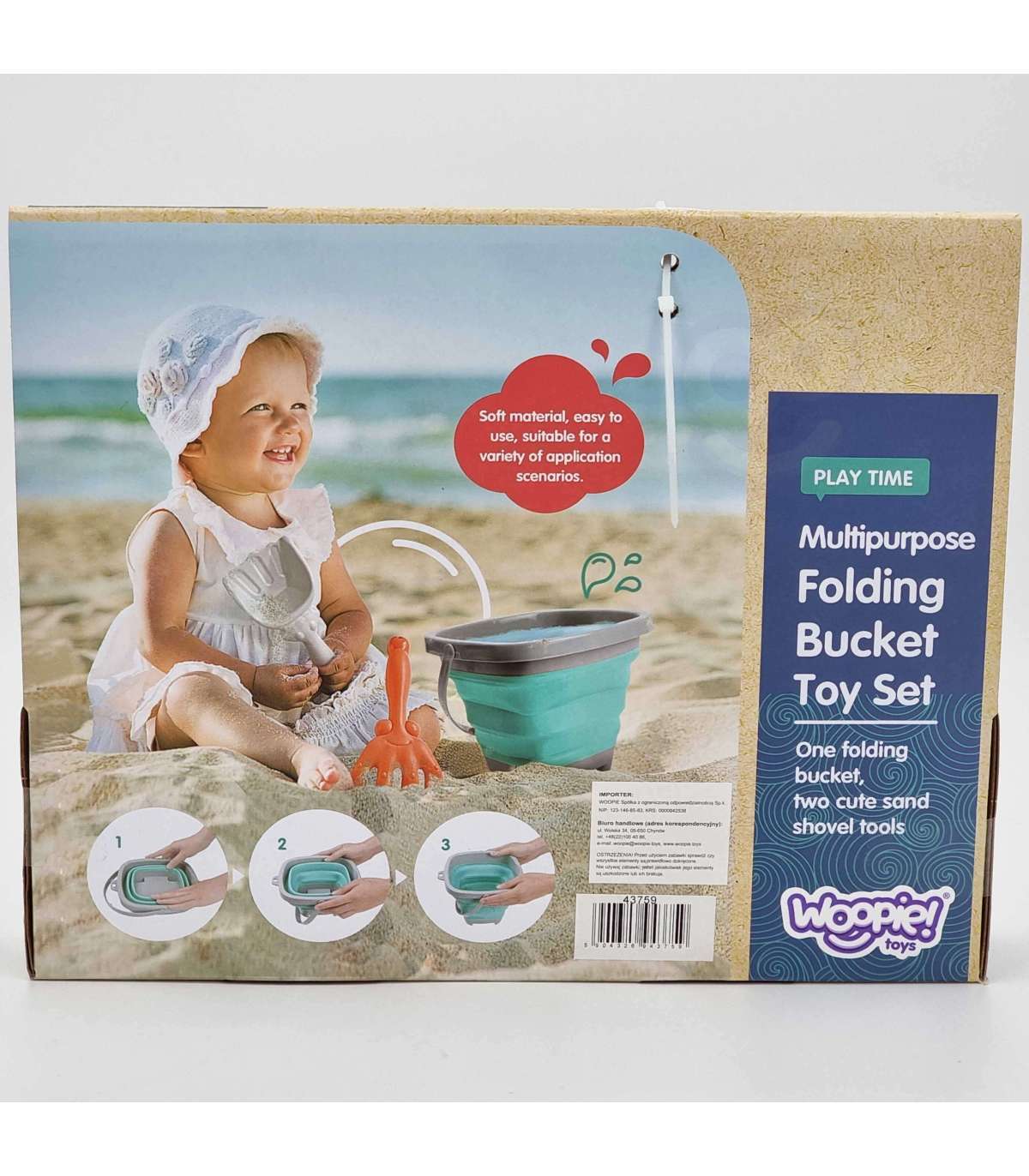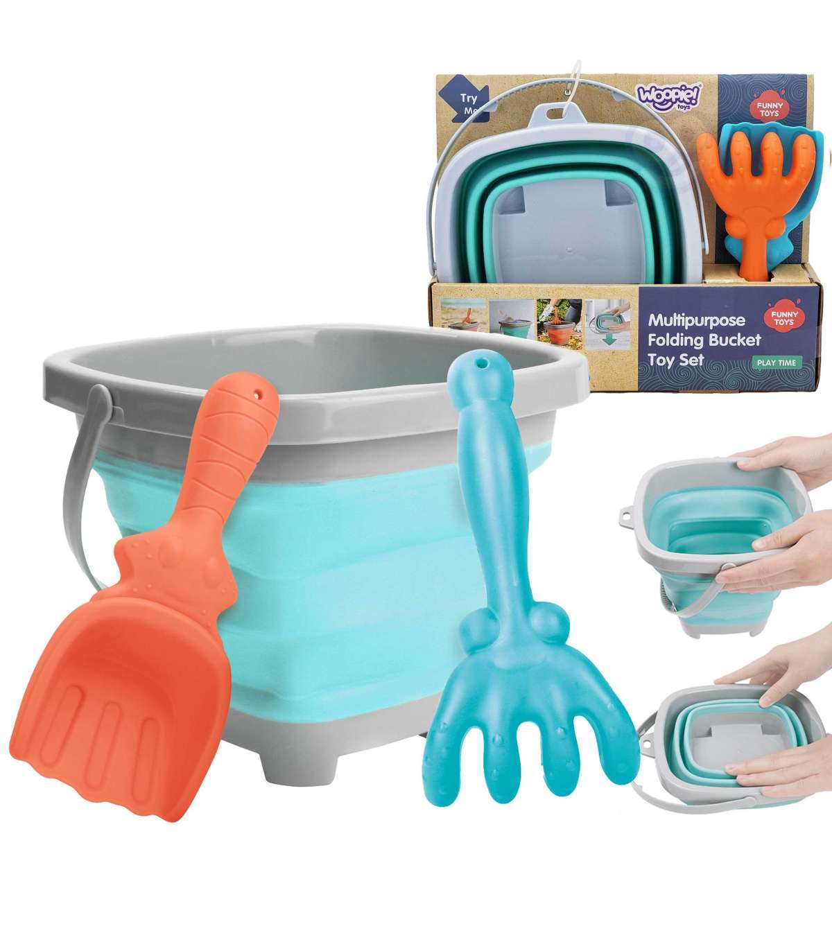 WOOPIE Набор: складное ведерко с граблями и лопаткой, синее