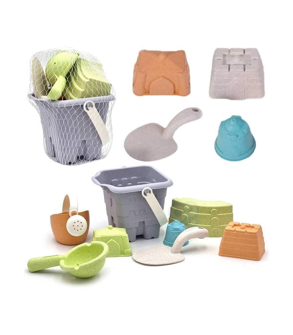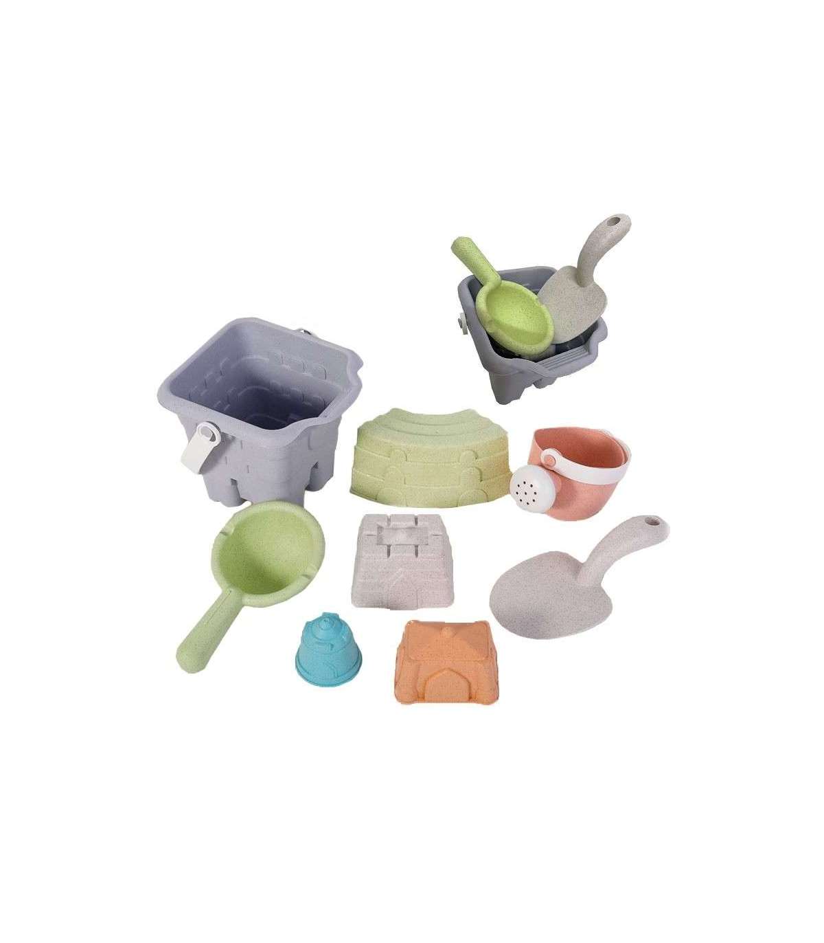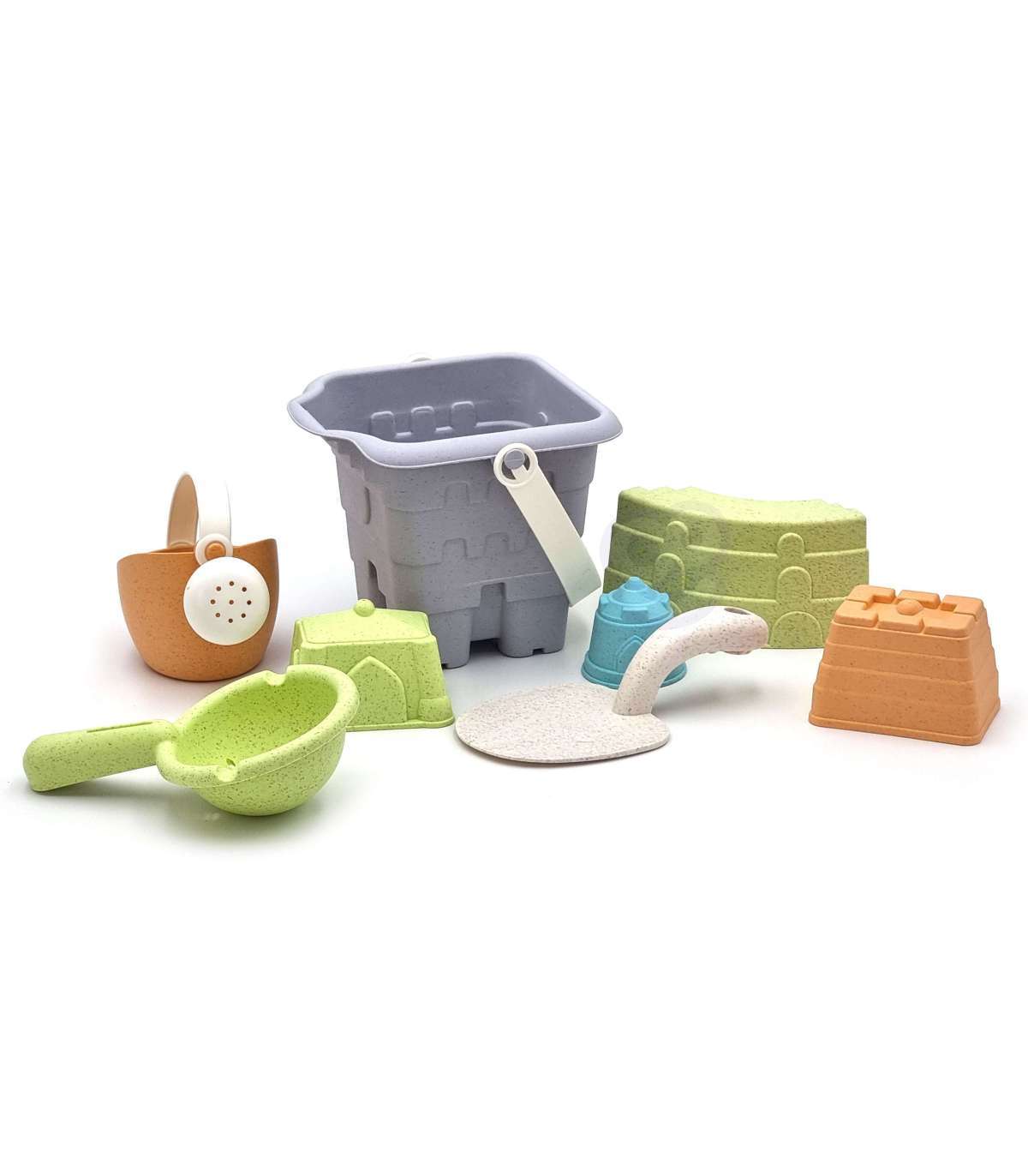 WOOPIE GREEN набор для песка в ведёрке — башня, 8 шт. Биодеградируемый органический материал