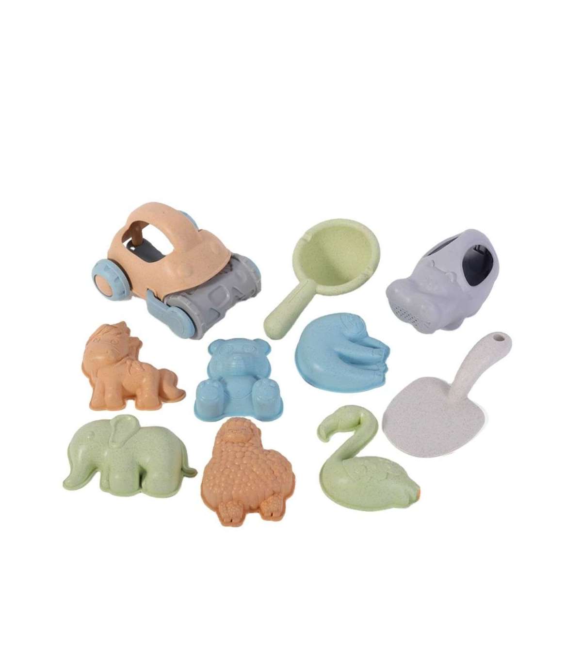 Набор для песка от бренда WOOPIE — отличное дополнение к песочнице и даже саду. Набор содержит 10 элементов: лейку, 6 формочек, 2 лопатки и машину. У лейки есть удобная ручка для переноски. Набор имеет самый модный пастельный дизайн и изготовлен из органического и биоразлагаемого (подвергающегося естественному разложению) материала. Дополнительно подлежит компостированию. Продукт безопасен для детей — дезинфицирован при 120 градусах. Гарантия отличного развлечения в песочнице, на пляже и даже в саду! Экологичный продукт!