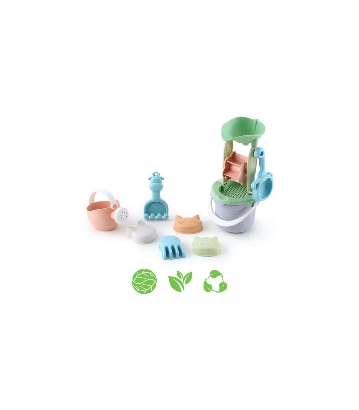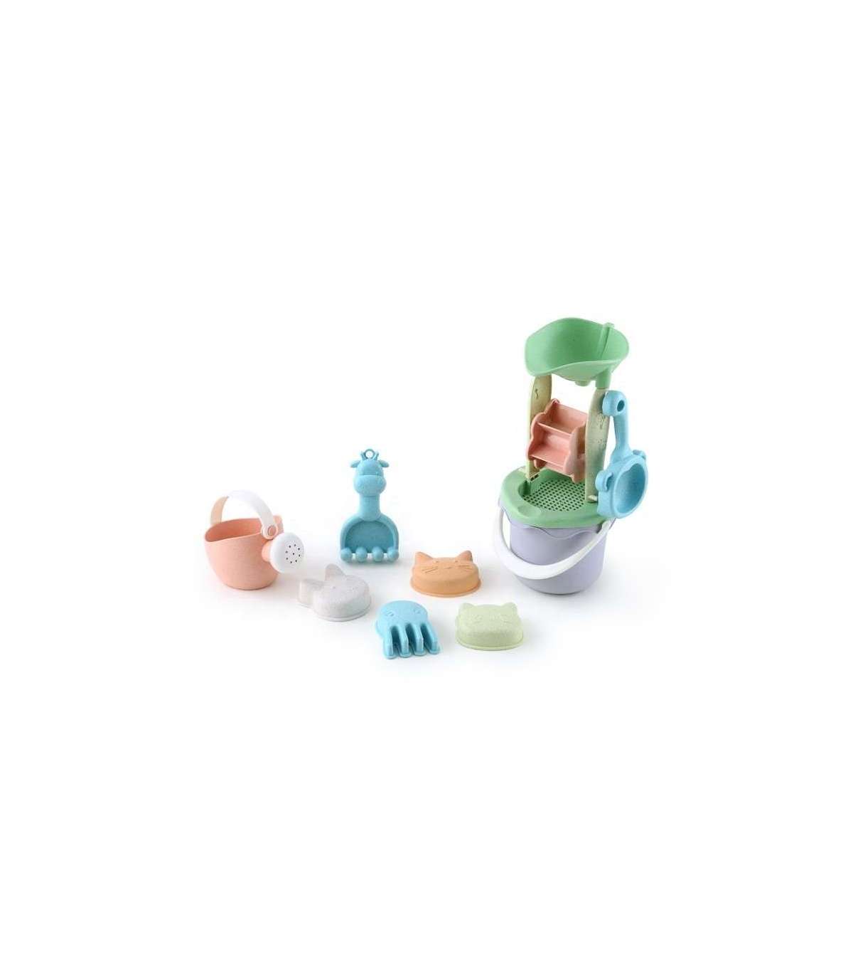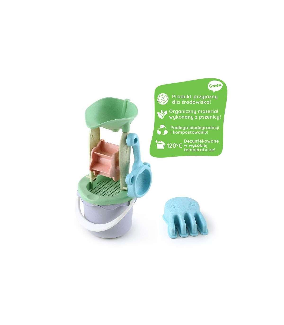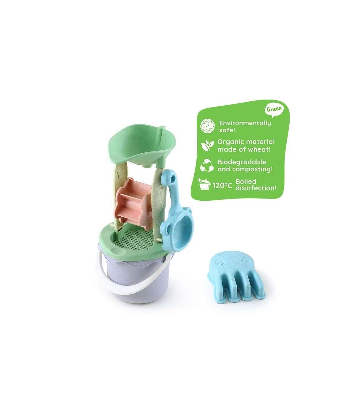 WOOPIE GREEN набор для песка в ведёрке с вращающимся колесом, 9 шт. Биодеградируемый органический материал
