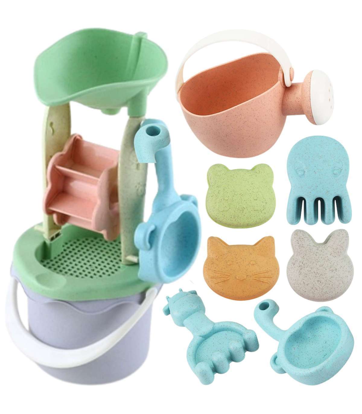 Набор для песка в ведерке от бренда WOOPIE — отличное дополнение к песочнице и даже саду. Набор содержит 9 элементов: ведерко, вертушка с ситом, лейка, 4 формочки, лопатку и грабли. У ведерка и лейки есть удобная ручка для переноски. Набор выполнен в самом модном пастельном дизайне и изготовлен из органического и биоразлагаемого (распадающегося естественным путем) материала. Дополнительно компостируется. Продукт безопасен для детей — дезинфицируется при 120 градусах. Гарантия отличного времяпровождения в песочнице, на пляже и даже в саду! Экологичный продукт!