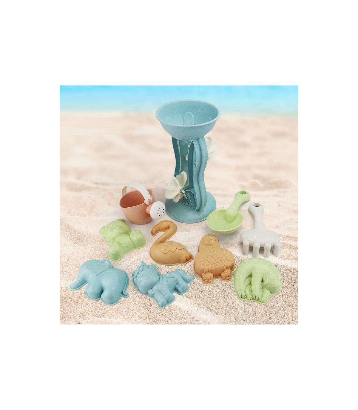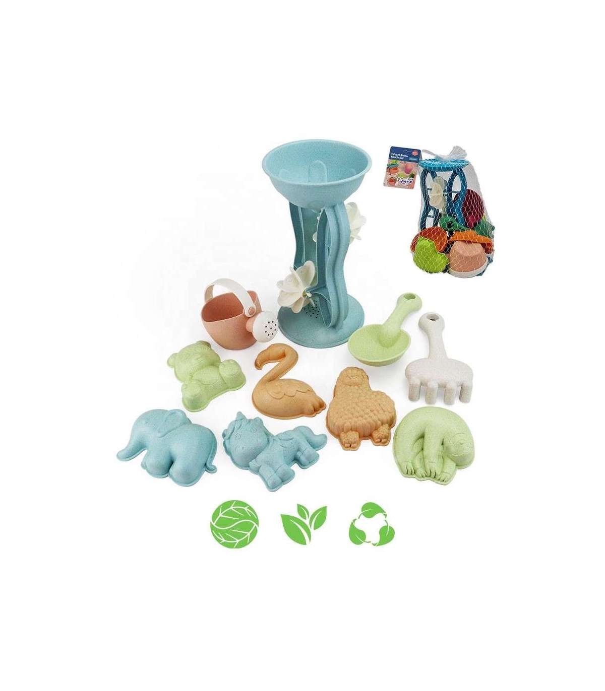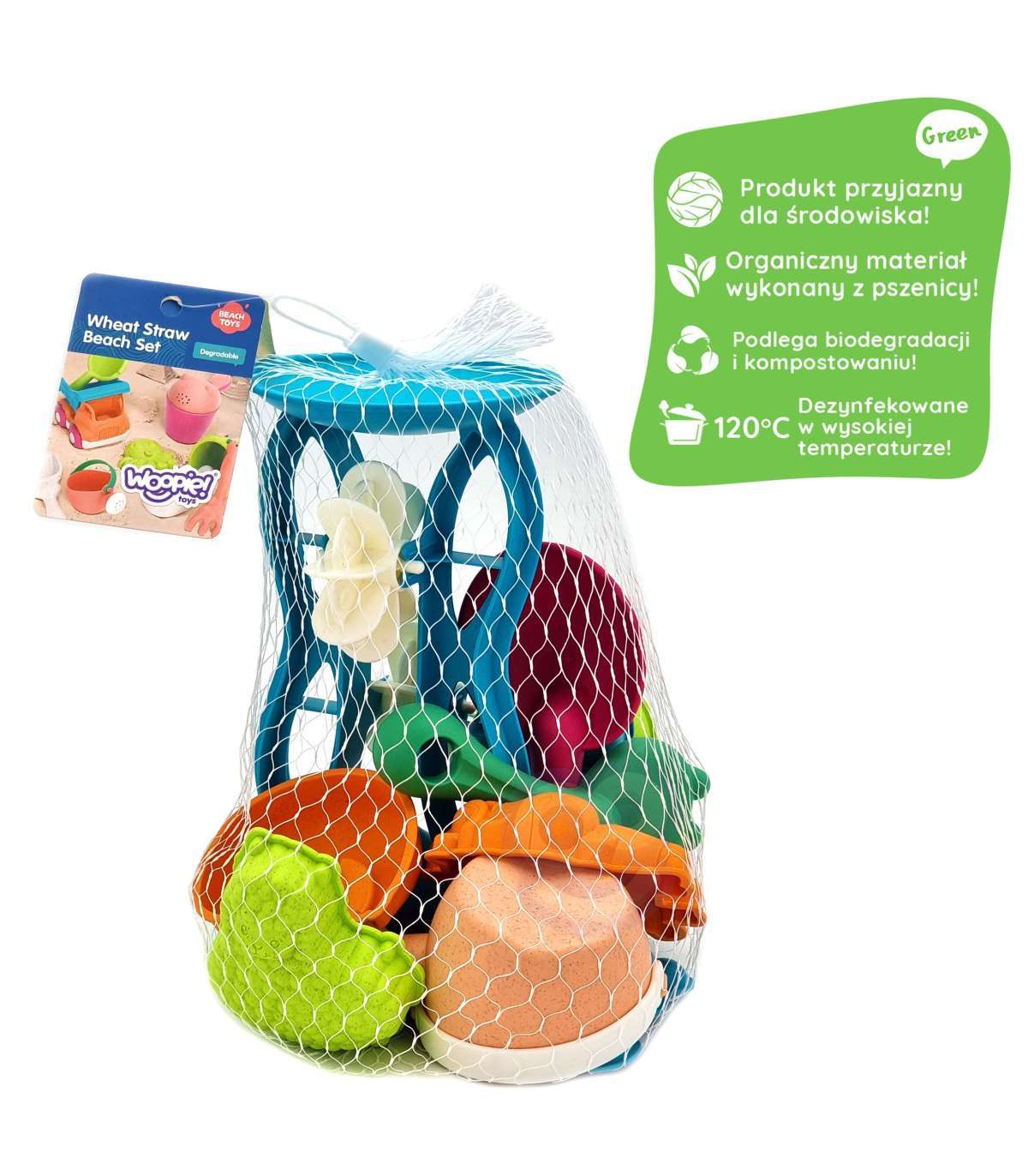 WOOPIE GREEN Набор для песка с вращающимся колесом и лейкой, 10 шт. Биодеградируемый органический материал