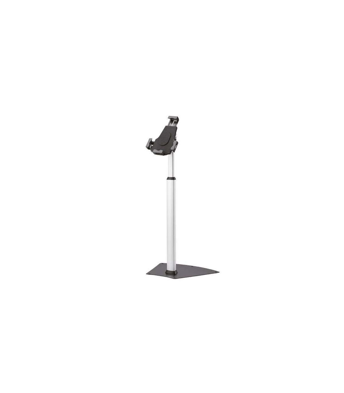 The Neomounts by Newstar floor stand, model TABLET-S200SILVER, anti-theft tablet floor stand with lock, is designed for securely displaying in the public. Width adjustable panel allows to install most 7.9"-10.5" iPad tablets. Invisible cable management inside the tube can make the wire organized better. This mobile stand is a great choice for space saving placement or when wall-, ceiling mounting or desk placement is not an option. This stand stretches your investment by serving a variety of projection needs by sharing a tablet over multiple rooms, sales floors or trade shows. Get optimal positioning for both standing and seated audiences, in any application, in any part of your location. Neomounts by Newstar TABLET-S200SILVER is lockable, height adjustable from 63 - 108 cm and suitable for most tablets. Also this project can be used both vertical as horizontal. The stand has mounting holes to secure the stand to the floor using screws. The weight capacity of this product is 1 kg. All installation material is included with the product.