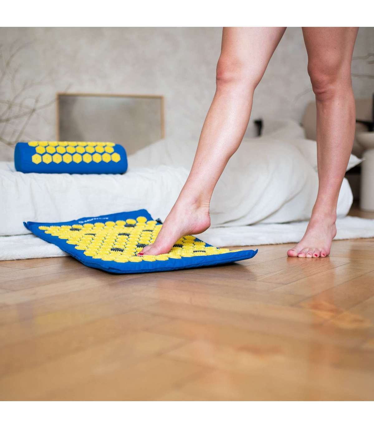 - Стоя на коврике, вы массируете свои стопы.