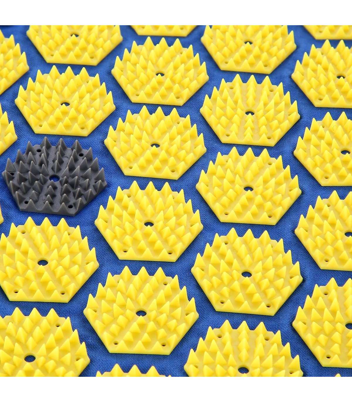 Весь комплект содержит целых 11 088 пластиковых шипов, что соответствует такому же количеству точек давления. Шипы расположены на специально сформированных элементах в виде розеток. Такое большое количество шипов и соответствующая плотность «розеток» позволяют получить оптимальное давление на тело.