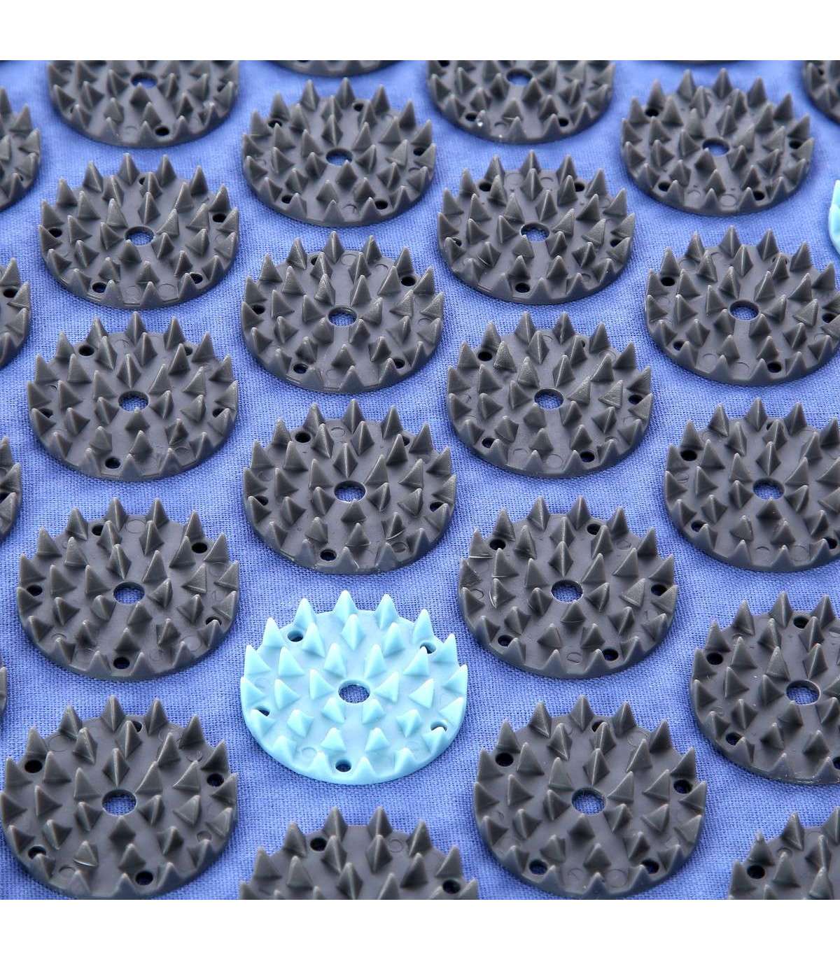 На мате имеется целых 6930 пластиковых шипов, что соответствует такому же количеству точек давления. Шипы расположены на специально оформленных элементах в форме розетт. Такое большое количество шипов и соответствующая плотность «розетт» позволяют достичь оптимального давления на тело.