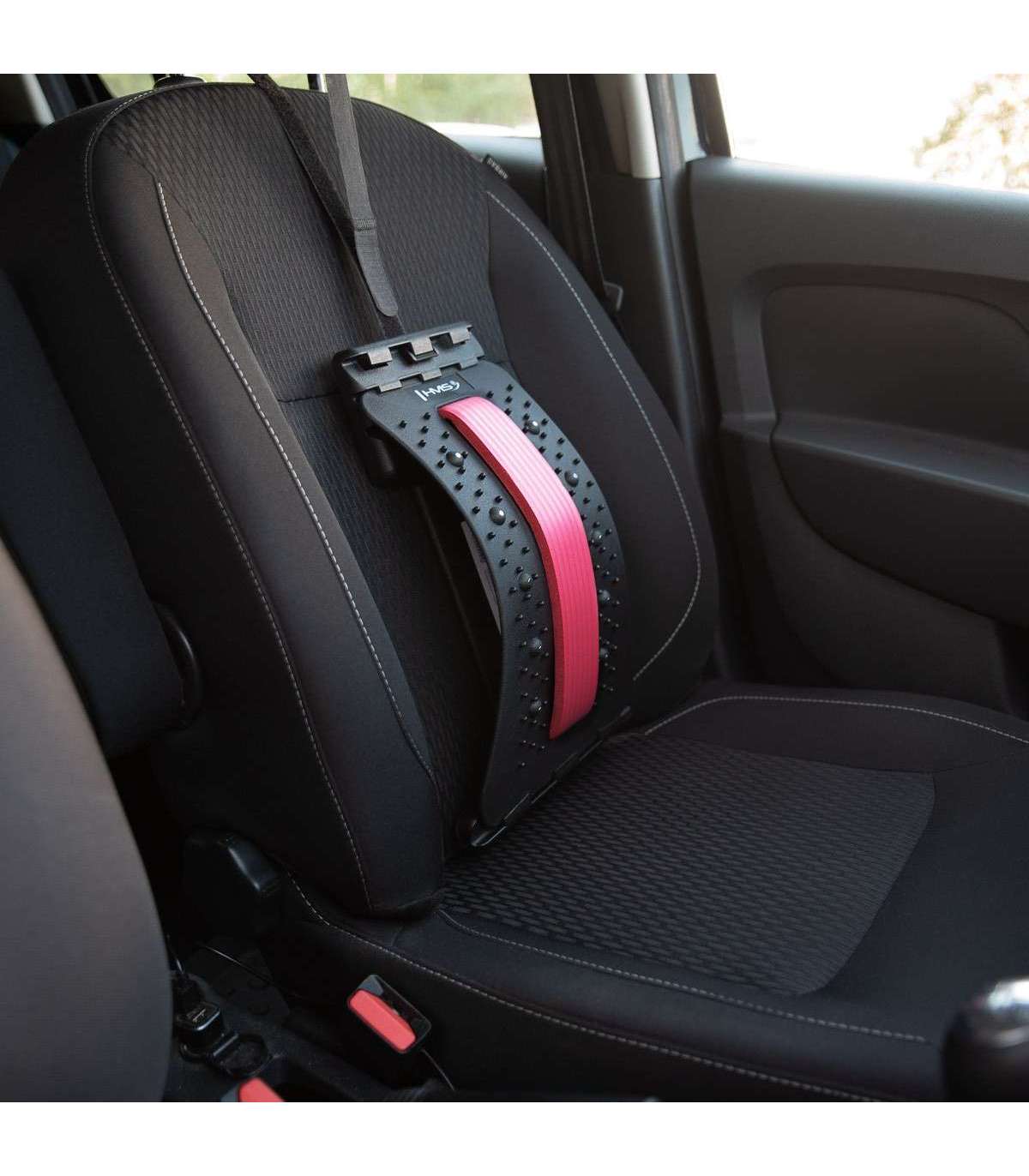 Устройство оборудовано липучим ремнём (Velcro), который позволяет закрепить прибор на автомобильном сиденье, чтобы длительные поездки были приятными и комфортными.