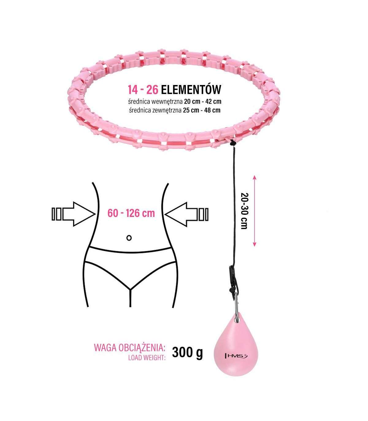 HMS — регулируемый хула-хооп с грузом для фитнеса. Он позволяет одновременно проводить тренировку и 360-градусный массаж талии. Идеален для укрепления и подтяжки мышечного корсета. Благодаря регулируемому диаметру HHW11 никогда не слетит во время упражнений, поэтому домашняя кардиотренировка может быть продолжительной и приятной. HHW11 разработан для людей plus size, которые хотят улучшить свою физическую форму и фигуру.