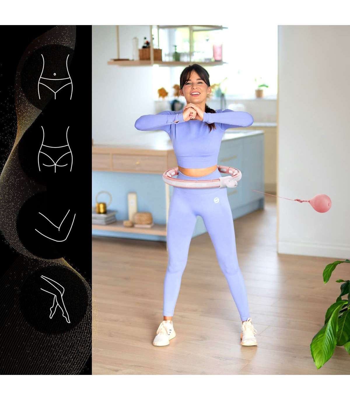 является магнитным регулируемым хула-хупом с грузовым фитнес-мячом. Он позволяет одновременно проводить тренировку и магнитный 360° массаж в области талии, а благодаря магниту обеспечивает точечный магнитный массаж. В частности, он идеально подходит для укрепления и подтяжки мышечного корсета. Благодаря регулируемой окружности HHM15 никогда не спадет во время тренировки! Устройство предназначено как для детей, так и для взрослых.