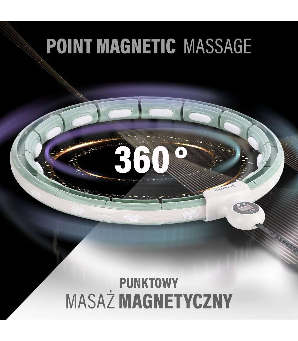 is a magnetic adjustable hula-hoop with a gravity fitness ball . It allows for simultaneous workout and magnetic 360-degree waist massage and thanks to a magnet it provides spot magnetic massage . Among other things, it is perfect for strengthening and firming the muscle corset. Thanks to its adjustable circumference, HHM15 never falls off during a workout! The device is dedicated to both children and adults.360° massage