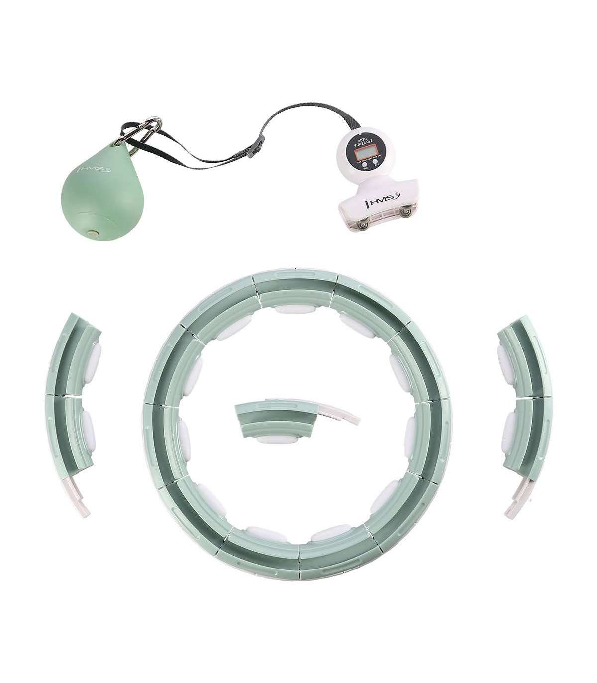 Due to the 360-degree movement the springs situated in heads around the perimeter of the loop perfectly cushion the overload and adapt to the body, which provides an additional massage effect resulting in a pleasant feeling. The three-dimensional massage method stimulates muscles quickly. Built-in specially designed tabs offer the shock absorption for a comfortable workout. Dose the intensity of the vibration by the speed of rotation.First of all, training with HHM15 will slim the abdomen and slenderize the waist. It also contributes to fat reduction from around the thighs and glutes. Additionally, it helps to strengthen the shoulder girdle and arms. Another advantage, due to strengthened abdominal and trunk muscles, is a visible improvement in the posture of a user. Just half an hour of continuous training with HHM15 is equivalent to one hour of swimming and three hours of running!Specification:Material: PVC, ABS, PPColor: greenCircuit adjustment:12 - 16 elementsinner diameter 25 cm - 35 cmoutside diameter: 34 cm - 44 cmdiameter of a single element 4,5 cmWaist: 78.5cm - 110cmWeight of the load: 400g.Adjustable weighted cable:20cm - 38cmLCD display functions: time, calories, number of repetitions, rotation speedComfortable clip fasteningBall bearings, stainless steelShock absorption: YESRemarks:Not intended for commercial use.Warranty: 24 months.Importer: Abisal Ltd. | Poland | 41-807 Zabrze | Pyskowicka Street 17 | e-mail: abisal@abisal.plAbisal Ltd.. declares that the products sold by the company are safe and meet the requirements contained in the Act on General Product Safety of December 12, 2003. (Journal of Laws of December 31, 2003)-