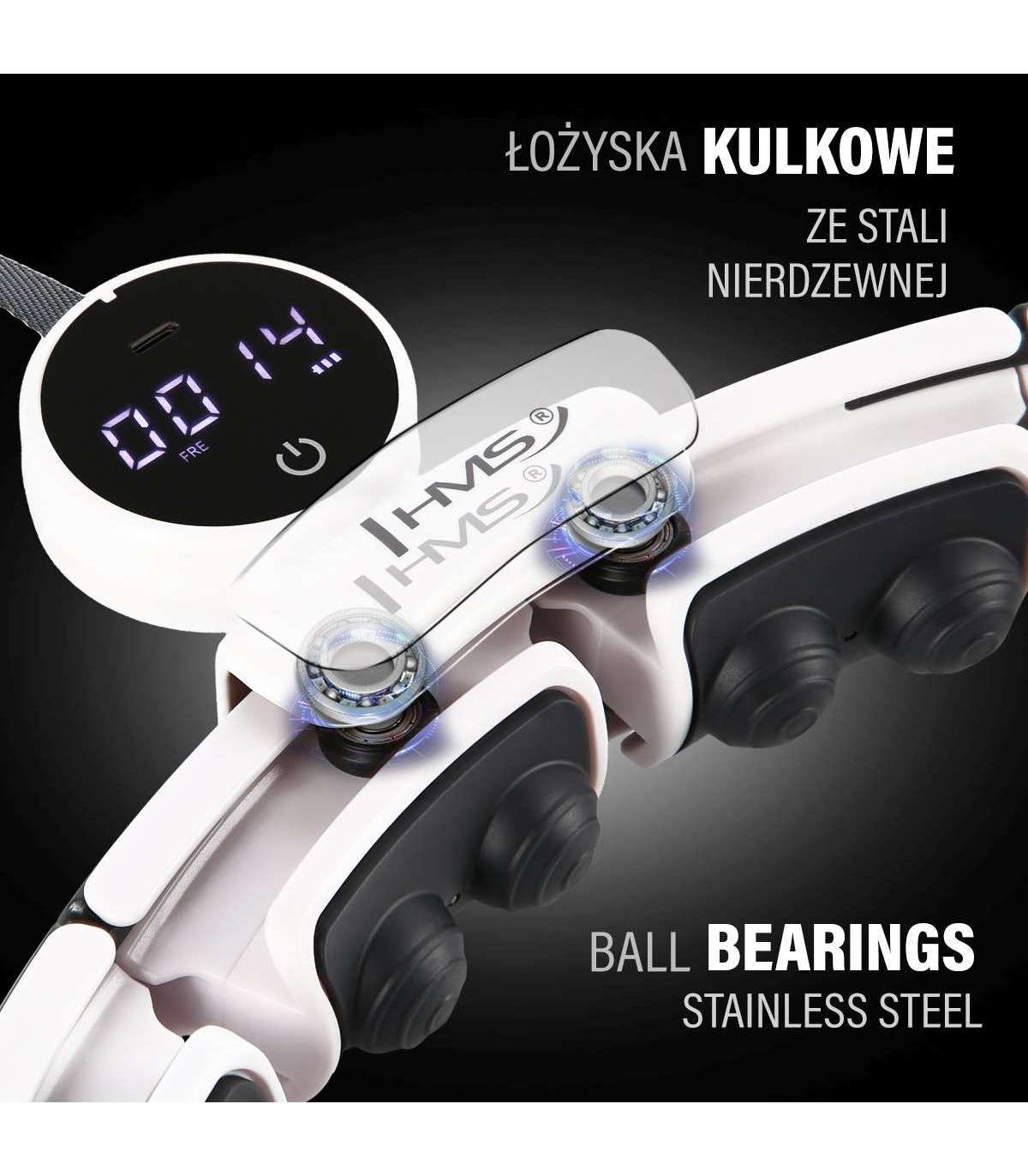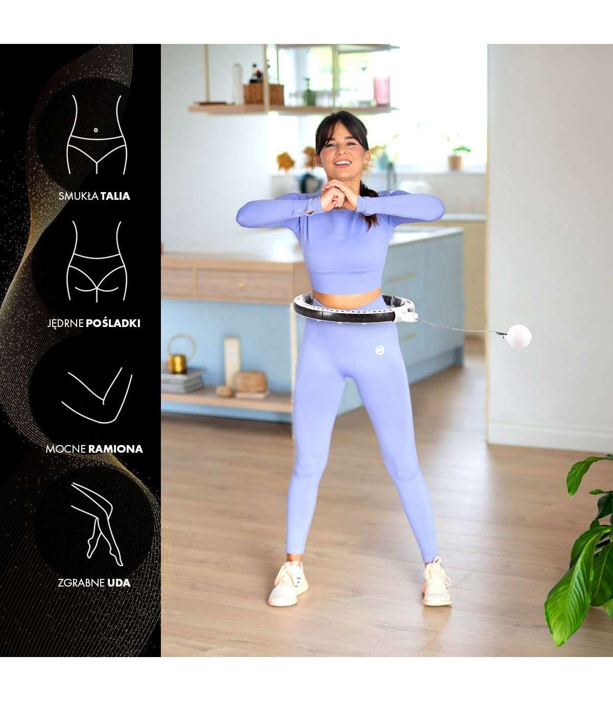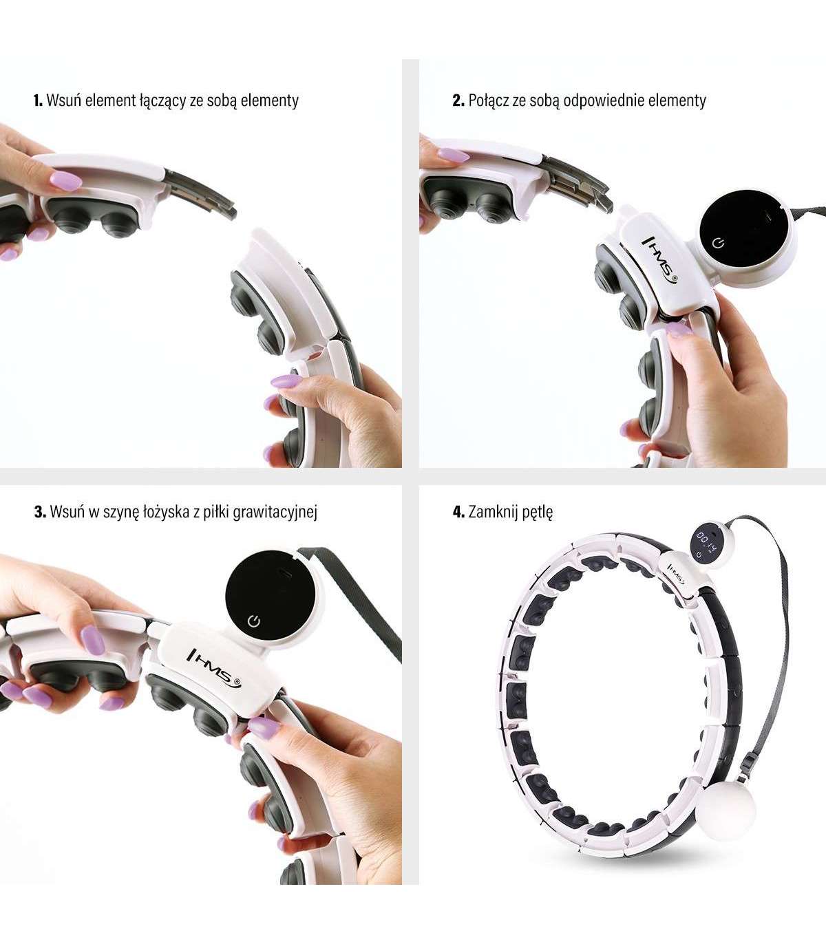 SET HULA HOOP MAGNETIC WHITE HHM16 WITH WEIGHT + COUNTER HMS + WAIST SUPPORT BR163 BLACKThe HHM16 HMS is a magnetic adjustable hula-hoop with a smart USB-charged digital display and gravity fitness ball. Allows simultaneous workout and 360-degree magnetic waist massage. Allows precise measurement of parameters during the workout. As many as 32 applied magnets will allow you to take full advantage of the possibilities of the magnetic field, which positively affects metabolism and accelerates fat burning. In a set with the BR163 slimming belt, you can achieve your dream figure even faster.Magnetic 360° massageThe HHM16 magnetic hula-hoop is an excellent solution to help you fight unnecessary kilos, located in the abdominal area, hips and buttocks. The magnets, which are attached to the inner rim of the wheel, are negatively polarised. This arrangement has a stimulating effect on the metabolism. The magnets are perfectly matched in terms of power.To further enhance the action of the HHM16, there are as many as two magnets in each element of the wheel, doubling the power of the massage!The operation of the HHM16 is very simple and intuitive. It is a closed loop that has a rail with an attached gravity ball (weight). As you make circular motions with your hips, centrifugal force begins to act, which moves the gravity ball around the circle, putting the abdominal muscles and torso under tension.USB-charged digital displayThe HHM16 is equipped with an improved counter. Thanks to the use of digital technology, it is possible to accurately measure workout parameters such as the number of calories burned, running time or number of repetitions. For the sake of the environment, we have moved away from alkaline battery power in the HHM16 and started to use a rechargeable battery charged via USB type C.360° workout and massage in oneThrough the 360-degree movement performed, the springs in the heads located around the perimeter of the loop perfectly cushion the strain and adapt to the body, resulting in an additional massage effect, providing the body with a pleasant sensation. The three-dimensional massage technique quickly stimulates the muscles. The built-in specially designed tabs have shock absorption for a comfortable workout.Simple and quick perimeter adjustmentQuickly and conveniently reduce or increase the size of the wheel, simply unplug or plug in as many elements as you need. The HHM16 has a total of 16 elements. The size can be adjusted from 10 to 16 elements, i.e. waist circumference from 59 cm to 113 cm (loop diameter: 28 cm to 45 cm).The assembly is done with clips. Simply push in the clip to pull out or insert the additional element. Then insert the gravity ball rail into the loop, adjust the length of the strap and you are done. It is important not to pull out the element that houses the sensor responsible for providing data.Training intensity adjustmentAs an added bonus, the length range of the gravity ball strap can be varied to adjust the intensity and difficulty level of the workout - the longer the strap, the more strength you need to put into the workout. Adjustable from 20 cm to 38 cm. The longer the strap, the greater the centrifugal force during the exercise, i.e. more weight and a higher level of difficulty to perform the rotations.The fastest results included! The fastest training effects will be obtained by combining training on the HHM16 hula hoop with the simultaneous use of the HMS BR163 belt. Such training will allow you to model your silhouette even faster. Using the belt increases sweating during training, thanks to which we get rid not only of water from the body, but also of toxins, salts and some metals.BR163 slimming beltThanks to the elastic neoprene and Velcro fastening, the belt adapts perfectly to the body, guaranteeing full comfort. It can be used by both women and men. It facilitates perspiration wicking, ensuring that the belt will fit your body perfectly at all times. The belt has vents to wick away perspiration and can be worn for hours without the risk of chafing the skin. It ensures optimal airflow and promotes microcirculation.Universal belt sizeUsing a blend of neoprene and polyester, the drawstring is fastened with a full-length Velcro fastener. This fastening allows it to be used by people with sizes from XXS all the way up to XL. Once purchased, the belt will be able to serve us even after we have lost a lot of weight.What do you gain from training?Exercises performed with the hula-hoop and the belt will strengthen your abdominal, back and even buttock muscles. They will also help you achieve a slim waist and reduce body fat. The HHM16 is used not only for fitness training, but also for rehabilitation and correcting postural defects. Just half an hour of uninterrupted training will give you the results you want!Exercise effectsSlim waistFlatter abdomenCellulite reductionSleek armsFirm thighs and buttocksImproved blood flowImproved posture Specification:Material: PVC, ABS, PP, TPRColor: white anthraciteCircuit adjustment:10 - 16 elementsinner diameter 19 cm - 36 cmoutside diameter: 28 cm - 45 cmdiameter of a single element 4,5 cmWaist: 59cm - 113cmWeight of the load: 300g.Adjustable weighted cable:20cm - 38cmmagnets 2 in each of 16 segments Weight adjustment: yesUSB charged digital LCD displayLCD display functions: time, calories, number of repetitions, rotation speed, battery charge levelComfortable clip fasteningBall bearings, stainless steelBelt specification:Color: blackMaterial: neoprene 70%, polyester 30%Size: universalFor women and menCan be used during exercise as well as for everyday useComfortable velcro fasteningPerfect fit to the body Lenght: 100 cmRemarks:Not for commercial use24 months warrantyImporter: Abisal Ltd. | Poland | 41-807 Zabrze | Pyskowicka Street 17 | e-mail: abisal@abisal.plAbisal Ltd.. declares that the products sold by the company are safe and meet the requirements contained in the Act on General Product Safety of D