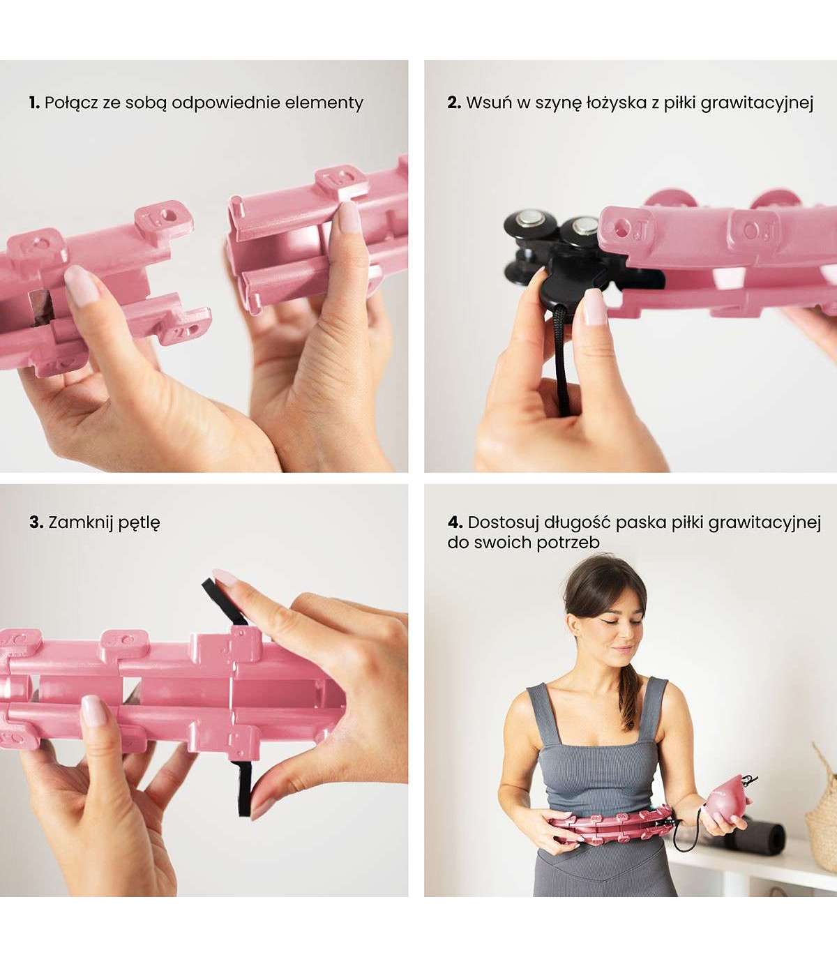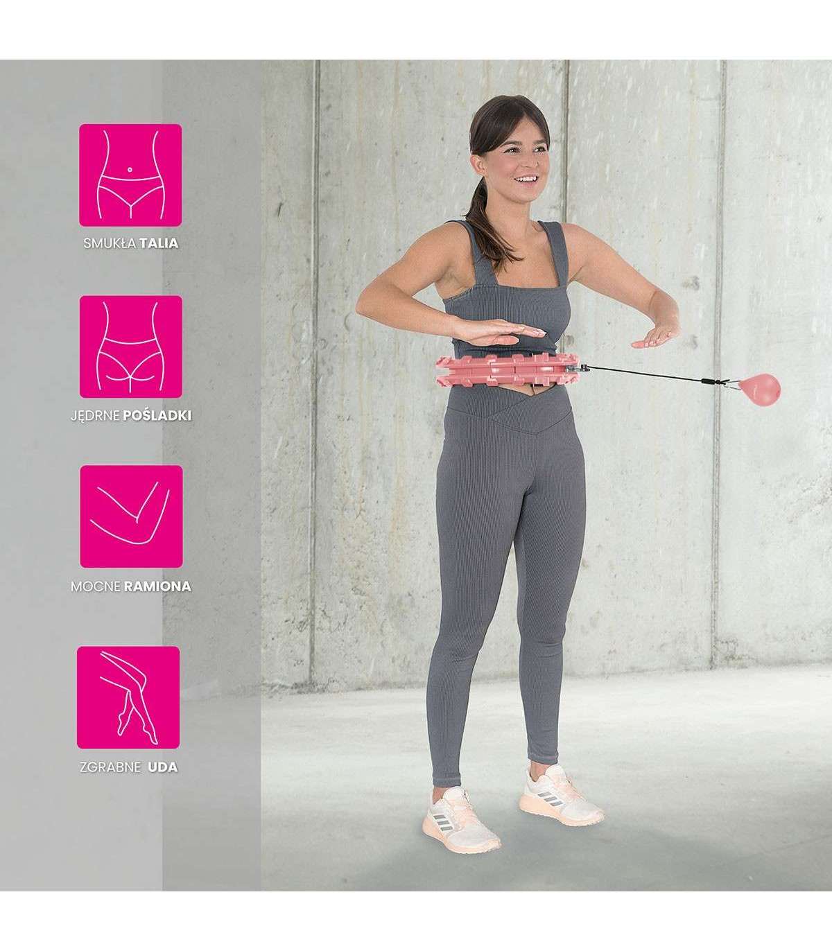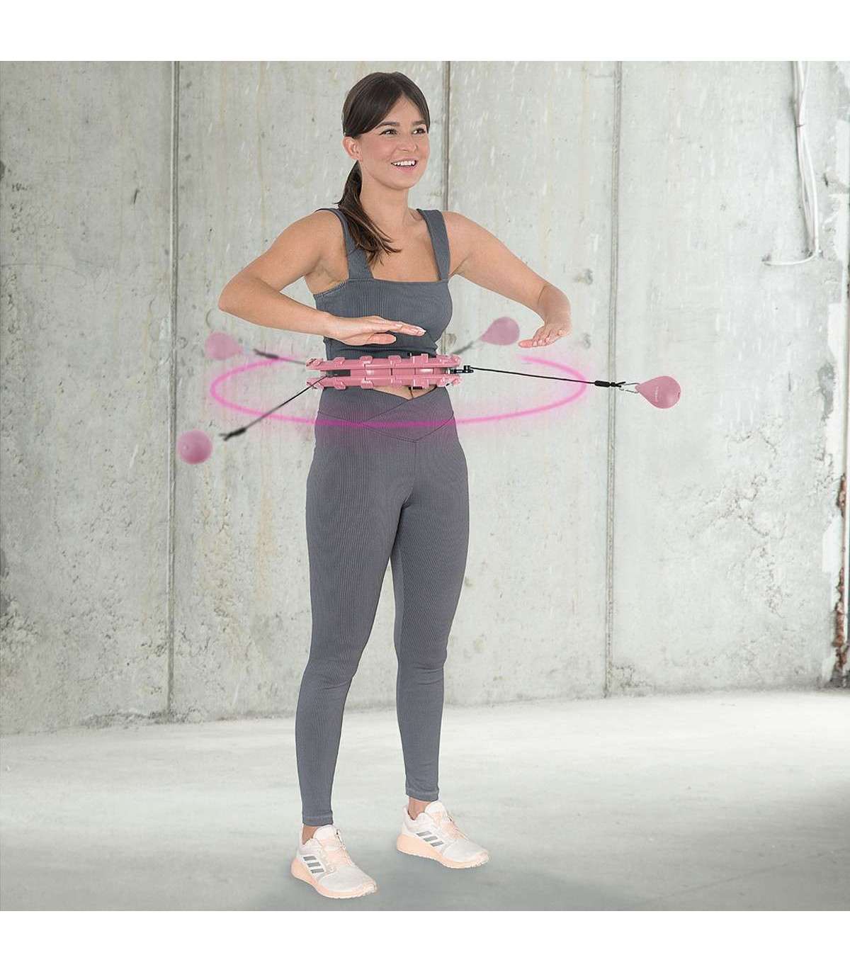 Быстро уменьшайте или увеличивайте размер круга, просто добавляя или убирая элементы. Всего у HHW01 24 элемента; размер можно настроить от 14 до 24 элементов, т.е. окружность талии от 48 см до 106,5 см (диаметр кольца 26 см — 45 см). Это гарантирует, что устройство не спадёт во время тренировки, поэтому оно подходит даже для новичков.