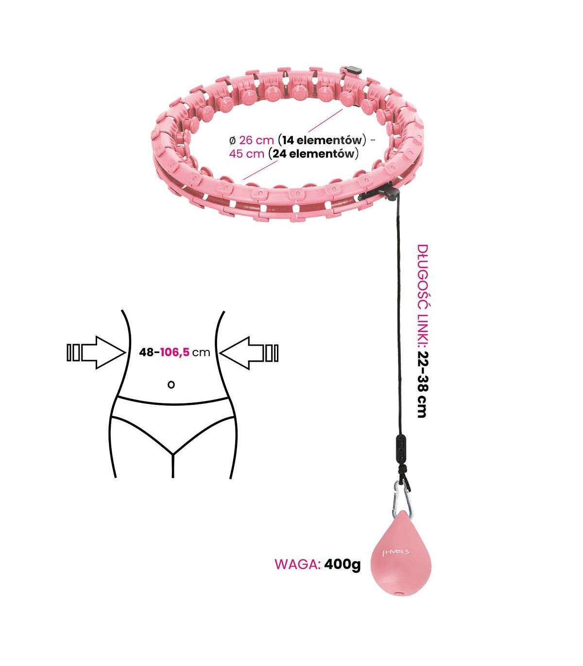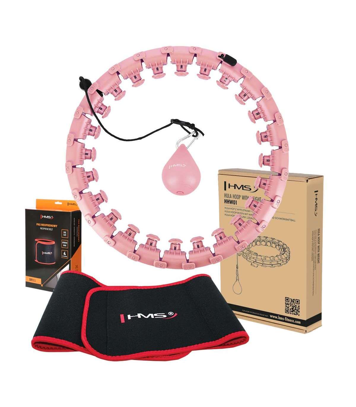 КОМПЛЕКТ HULA HOOP HHW01 РОЗОВЫЙ С ГРУЗОМ HMS + ПОЯС BR163 ДЛЯ ТАЛИИ КРАСНЫЙ