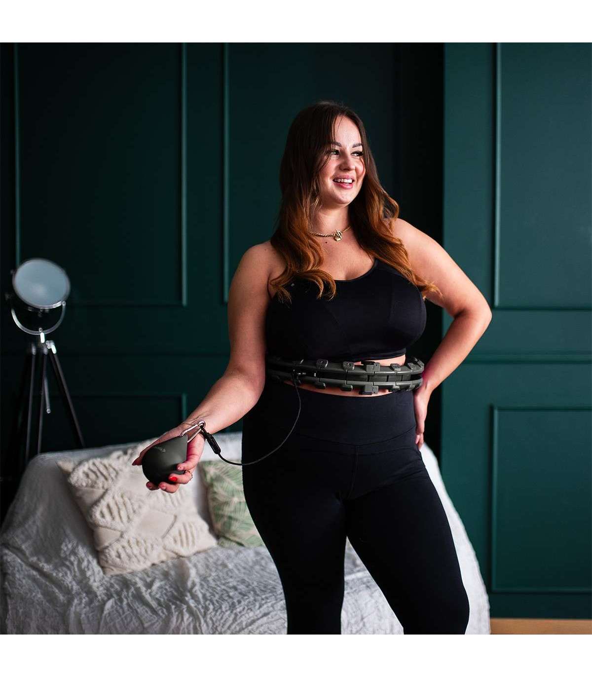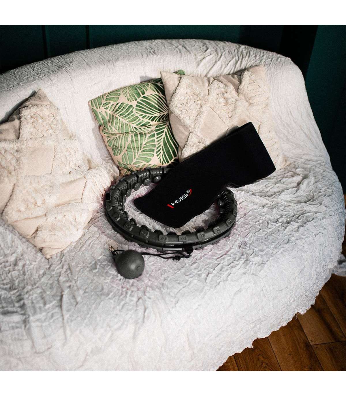 SET HULA HOOP HHW12 BLACK WITH WEIGHT HMS + WAIST SUPPORT BR163 BLACK PLUS SIZE