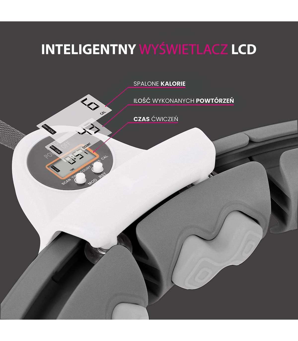 HHW06 оснащён большим ЖК-дисплеем, который показывает время тренировки, сожжённые калории и количество повторений (поворотов), что облегчает контроль прогресса.