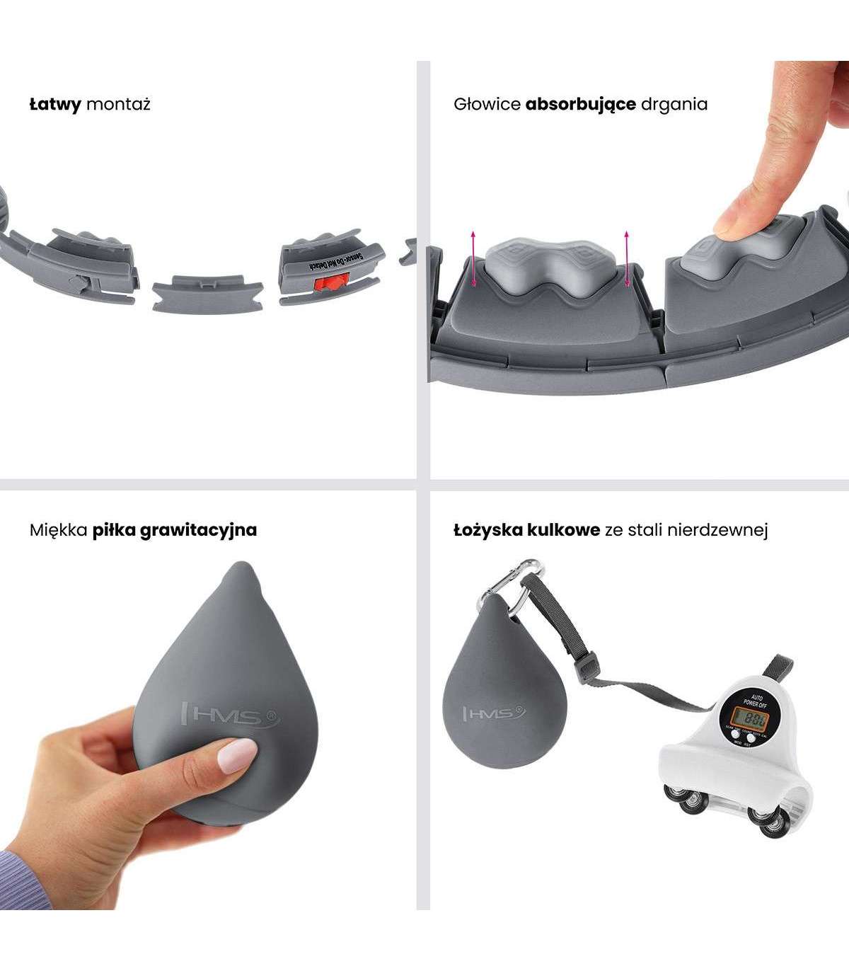 HHW06 HMS — регулируемый хула-хуп с амортизирующими вкладками и грузовым шаром для фитнеса. Он обеспечивает одновременную тренировку и 360-градусный массаж талии, идеально подходит для укрепления и подтяжки мышечного корсета. Благодаря регулируемому диаметру HHW06 не слетает во время упражнений, что позволяет проводить более длительные домашние кардио-тренировки и получать лучшие результаты. В сочетании с поясом BR163 для коррекции фигуры вы можете быстрее достичь желаемого результата.