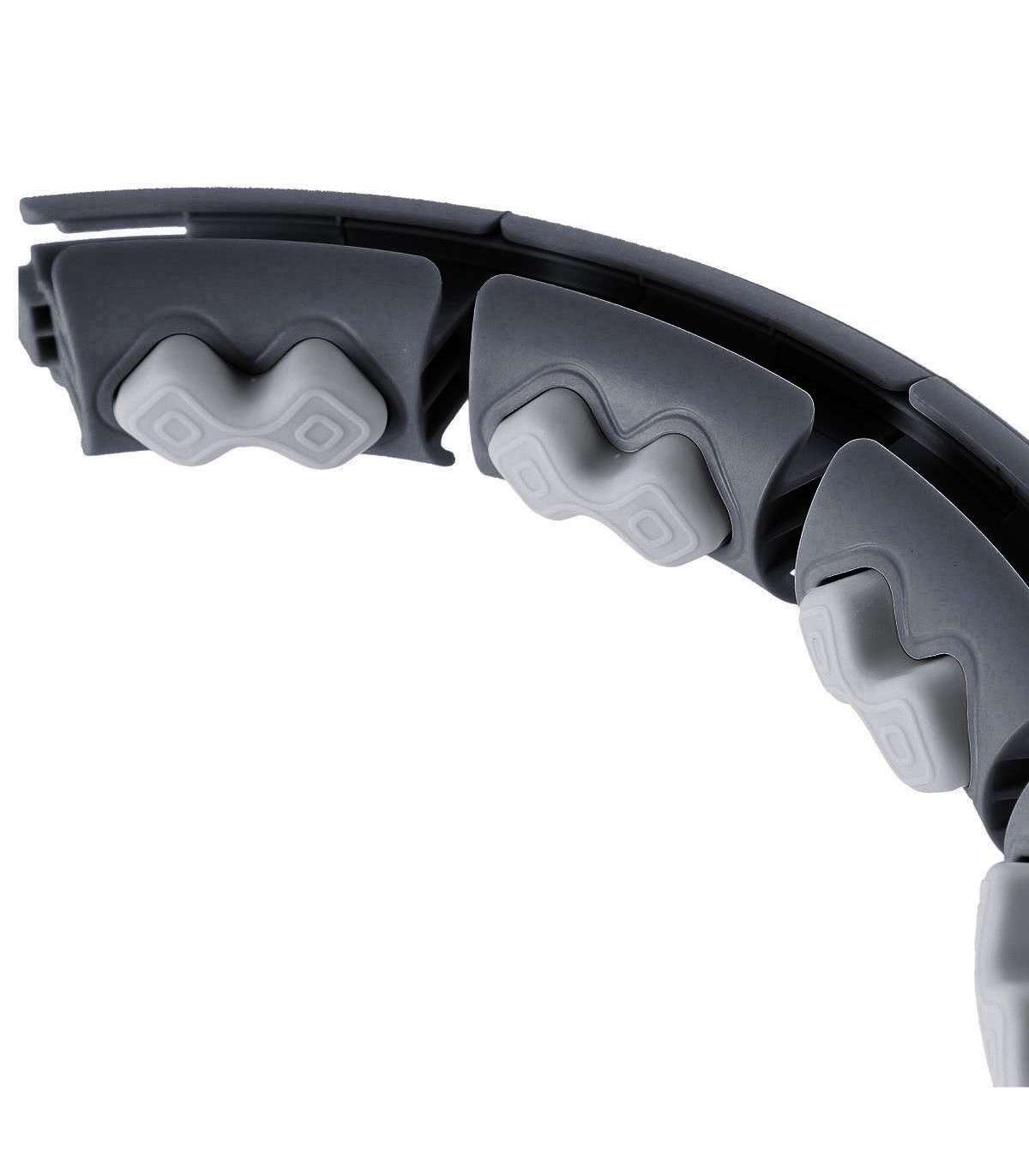 Быстро и удобно уменьшайте или увеличивайте размер обруча, просто убирая или добавляя элементы. В HHW06 всего 16 элементов. Размер можно регулировать от 12 до 16 элементов, что соответствует окружности талии от 76 см до 111,5 см (диаметр кольца 34 см — 45 см). Это гарантирует, что устройство не слетит во время тренировки, поэтому им могут пользоваться даже новички.