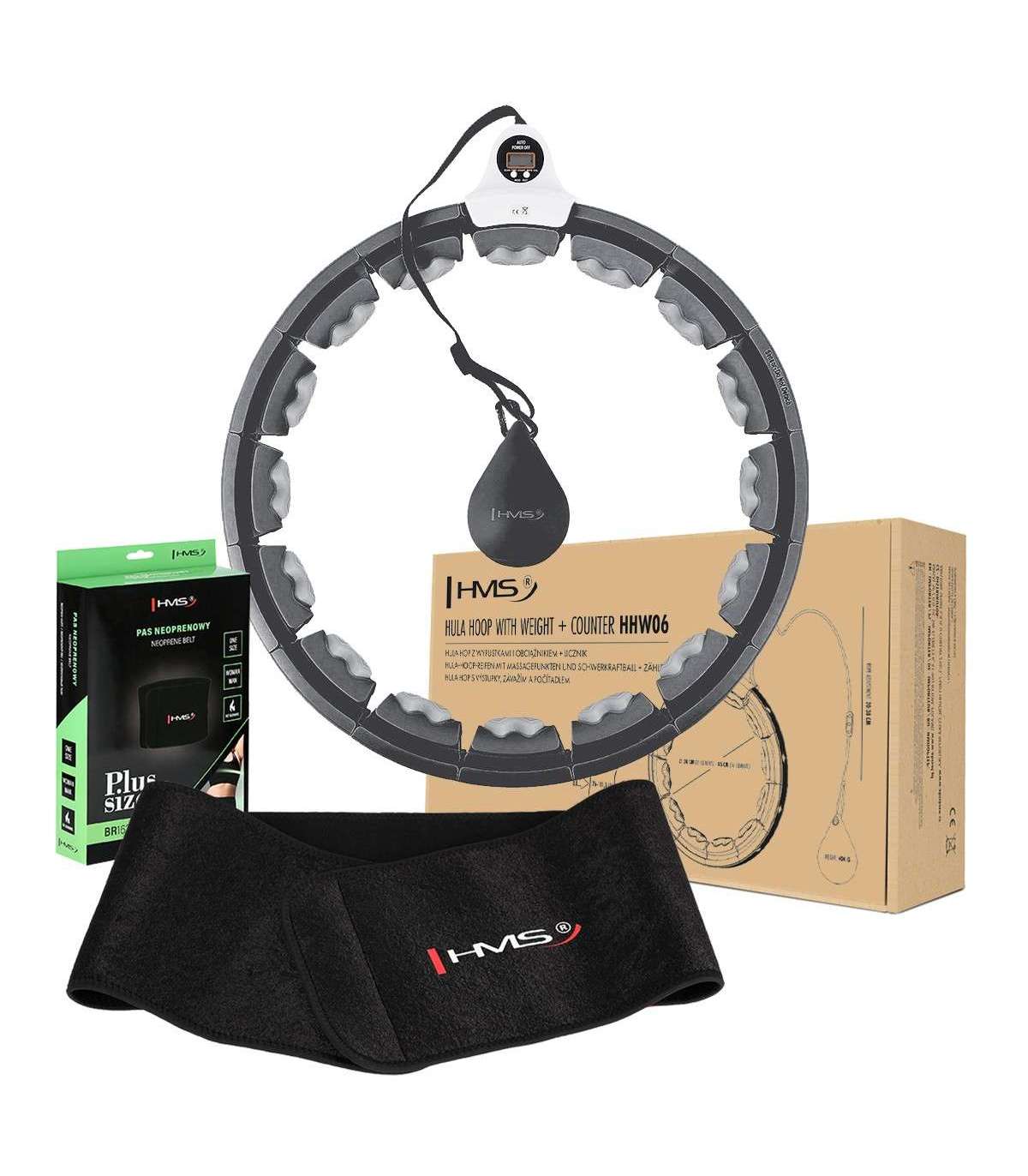 НАБОР HULA HOOP HHW06 ЧЕРНЫЙ С ГРУЗОВЫМ ШАРОМ И СЧЁТЧИКОМ HMS + ПОДДЕРЖКА ТАЛИИ BR163 ЧЕРНЫЙ ПЛЮС-РАЗМЕР