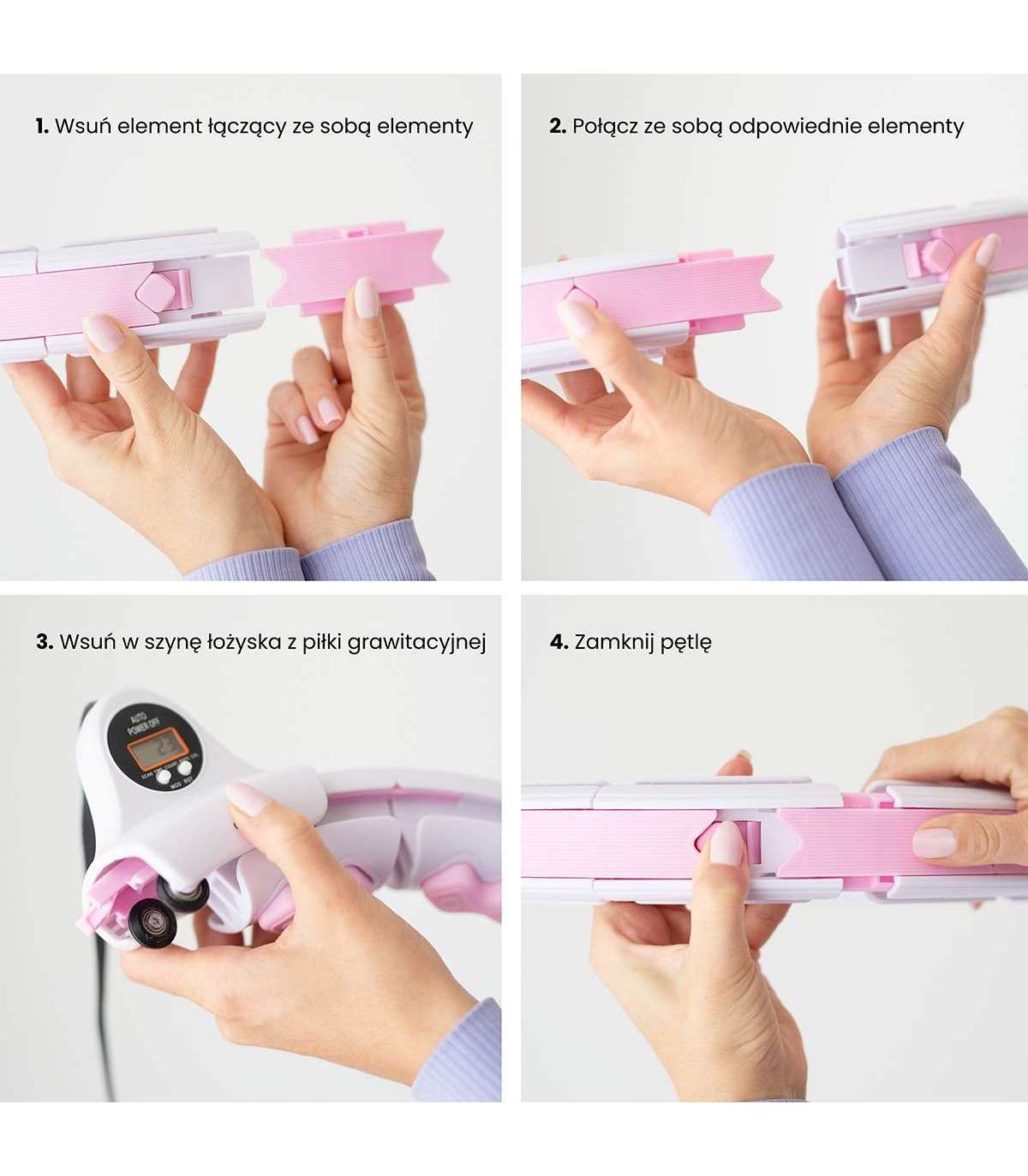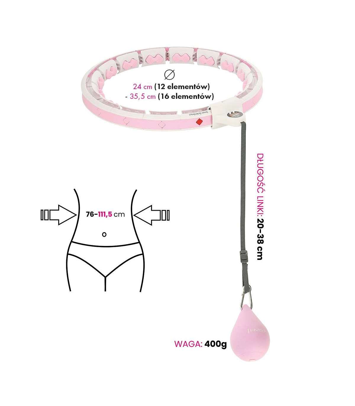 Быстро и удобно уменьшайте или увеличивайте размер обруча, просто отключая или подключая нужное количество элементов. У HHW06 всего 16 элементов. Размер можно регулировать от 12 до 16 элементов, то есть обхват талии от 76 см до 111,5 см (диаметр петли: 34 см до 45 см). Это гарантирует, что устройство не спадет во время тренировки и подходит для новичков.