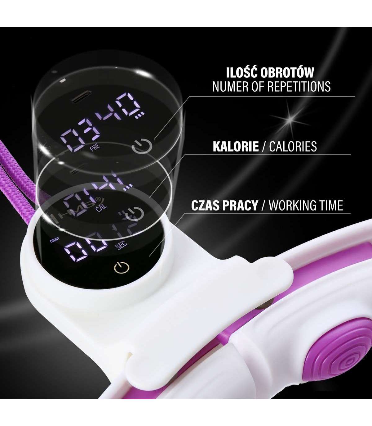 Оснащен современным цифровым дисплеем, HHM17 позволяет постоянно отслеживать результаты тренировки, отображая продолжительность, сожженные калории и количество выполненных оборотов. Дисплей заряжается через универсальный разъем USB-C, что повышает удобство и мобильность использования.