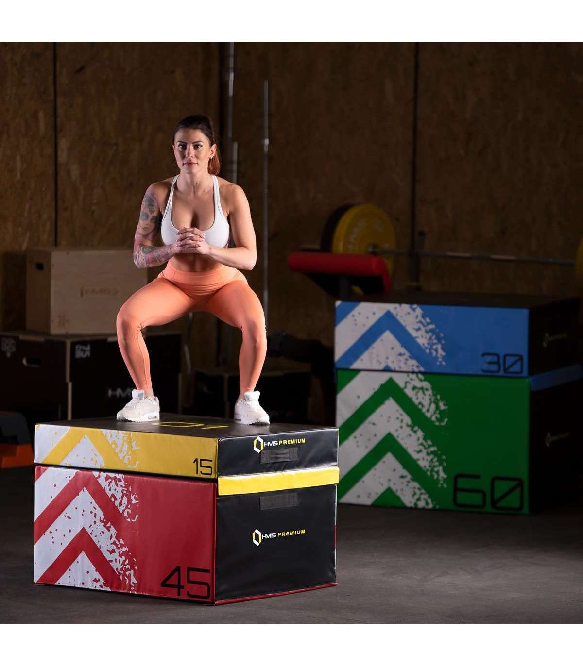 PYBS01 HMS PREMIUM — комплект из четырех мягких плиометрических ящиков разного размера.