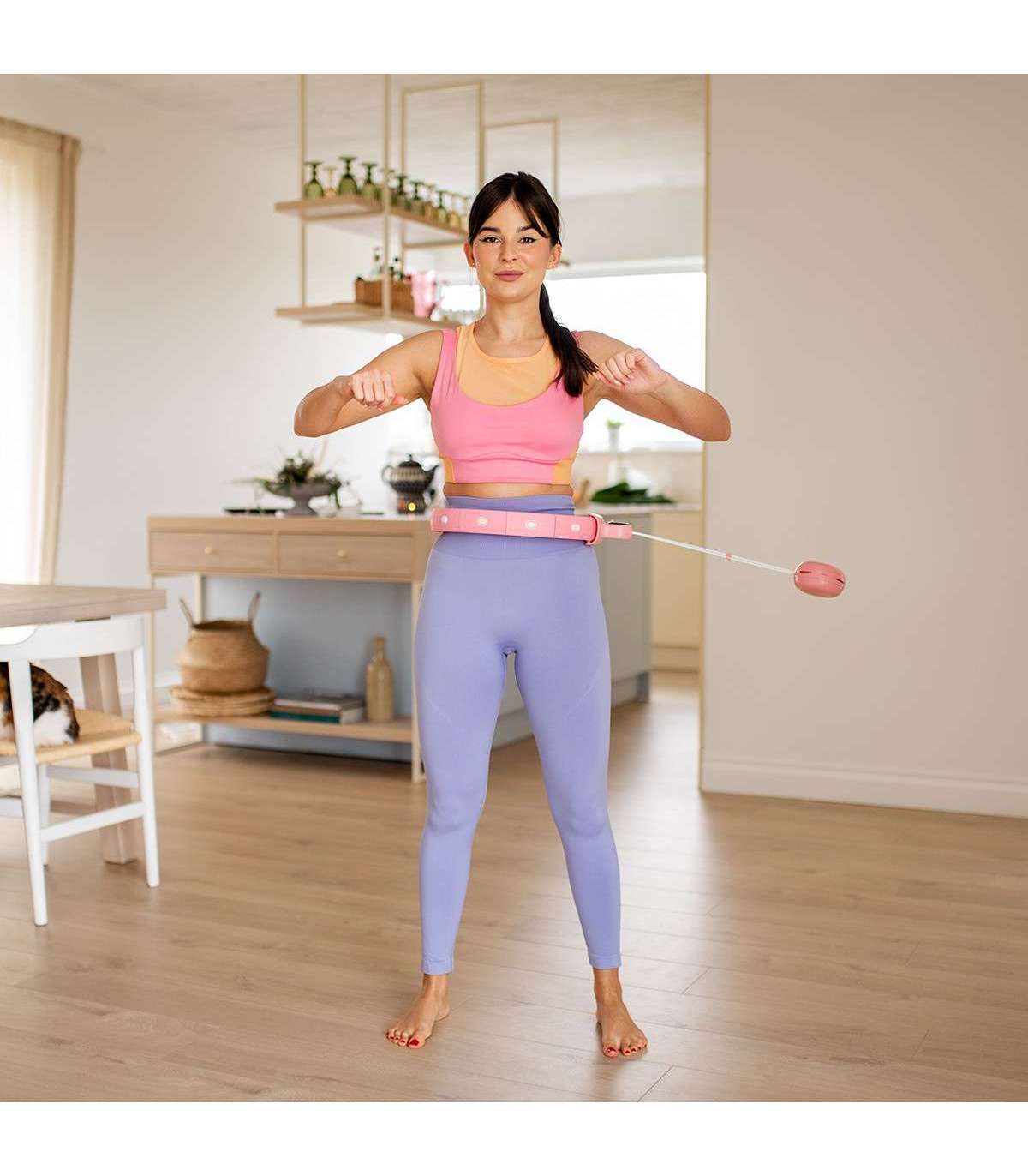 Это замкнутое кольцо с рельсом и прикрепленным грузом. При круговых движениях бедрами центробежная сила начинает действовать и перемещает груз по кольцу, напрягая мышцы пресса и корпус.