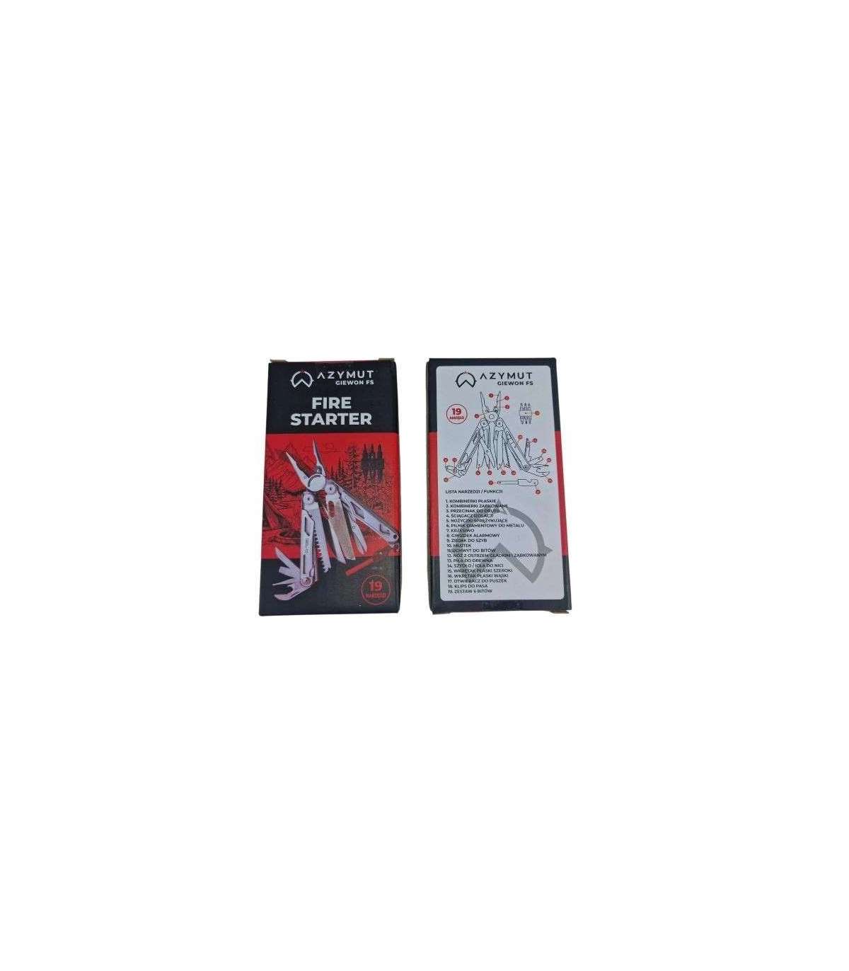 Multitool AZYMUT Giewon FS - Fire Starter - 19 narzędzi - krzesiwo + gwizdek + kabura do pasa (H2038A)