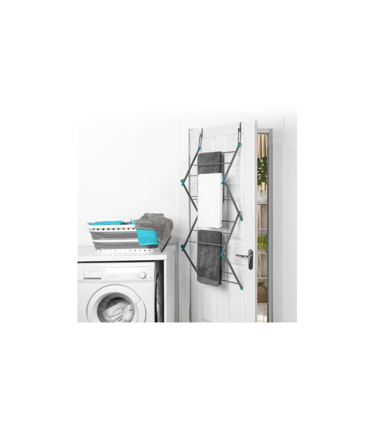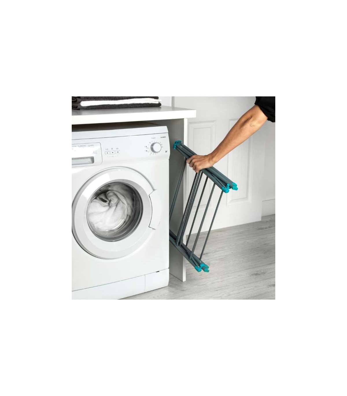 Õhuti käib kergesti kokku, nii et saate selle lihtsaks hoiustamiseks libistada leti ja pesumasina vahel asuvatesse väikestesse piludesse.