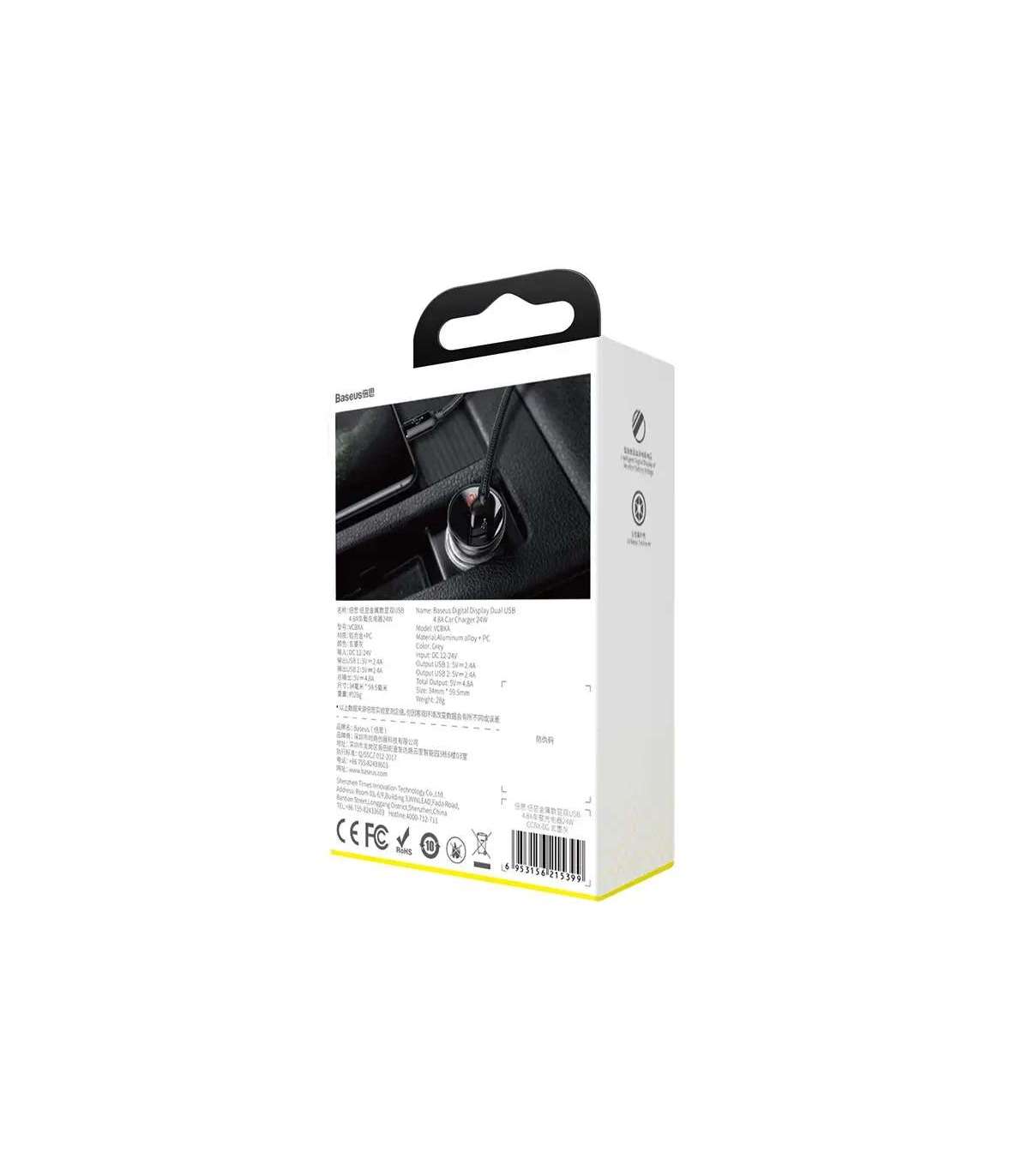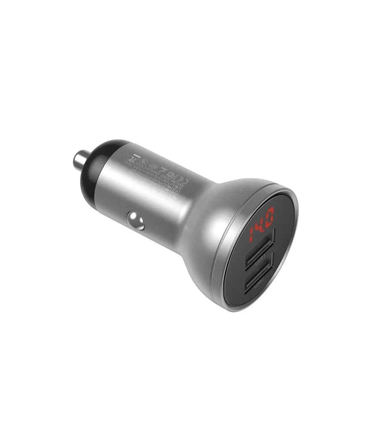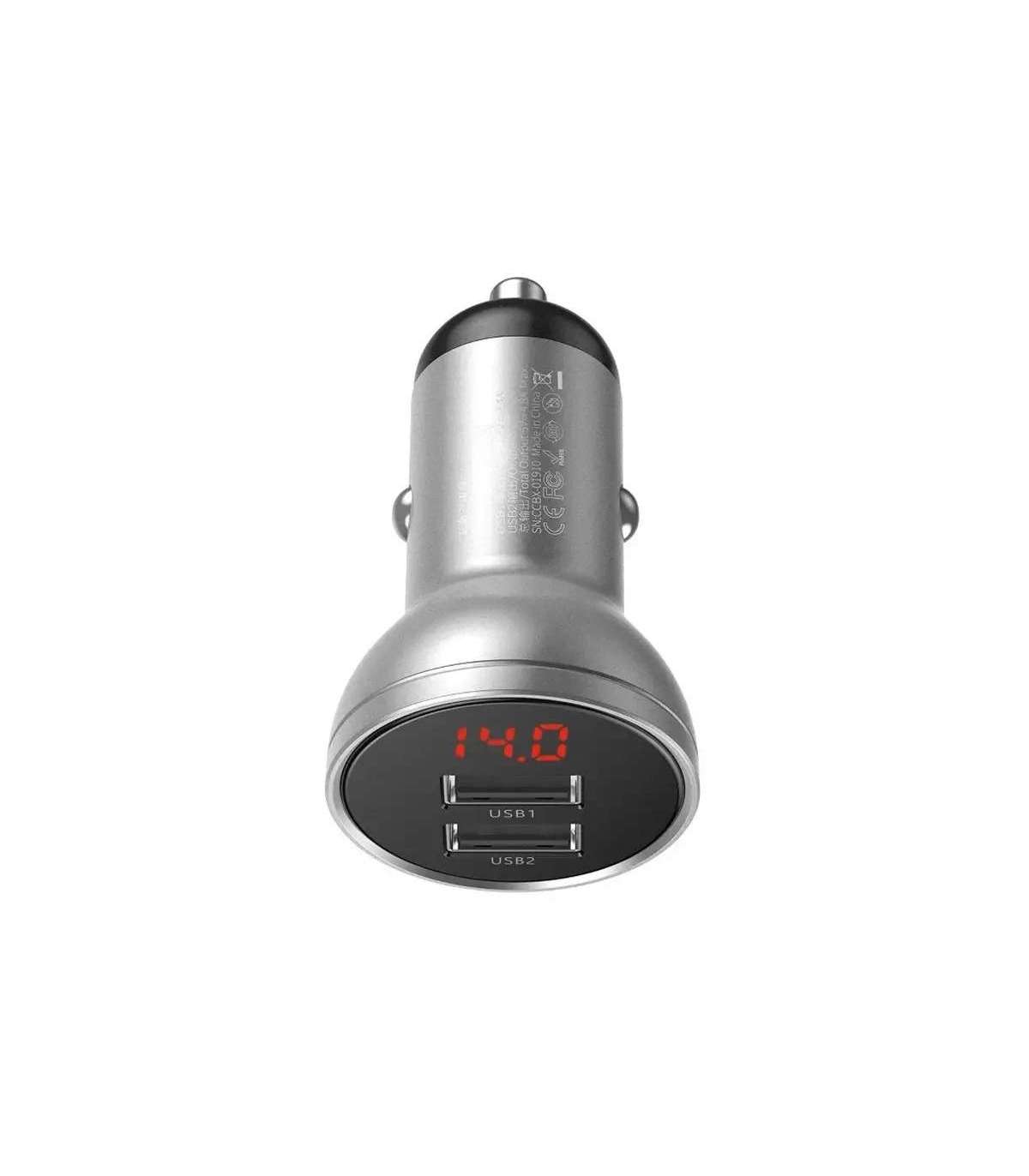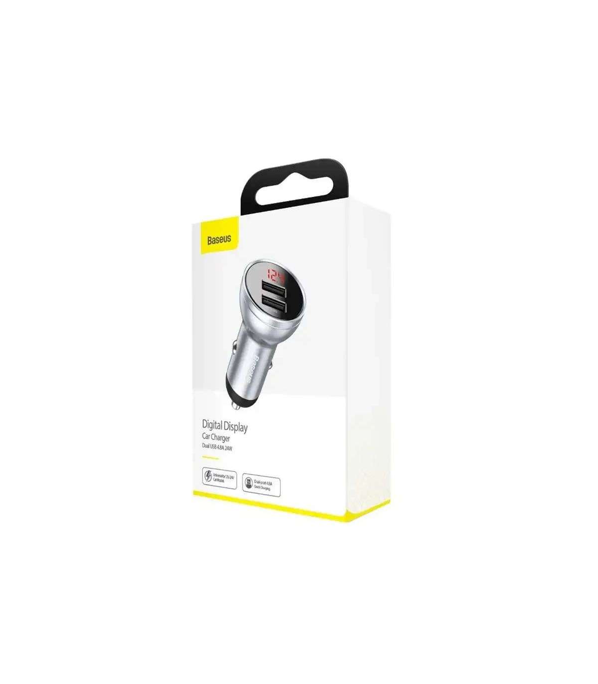 Ładowarka samochodowa Baseus z wyświetlaczem, 2x USB, 4,8A, 24W (srebrna)