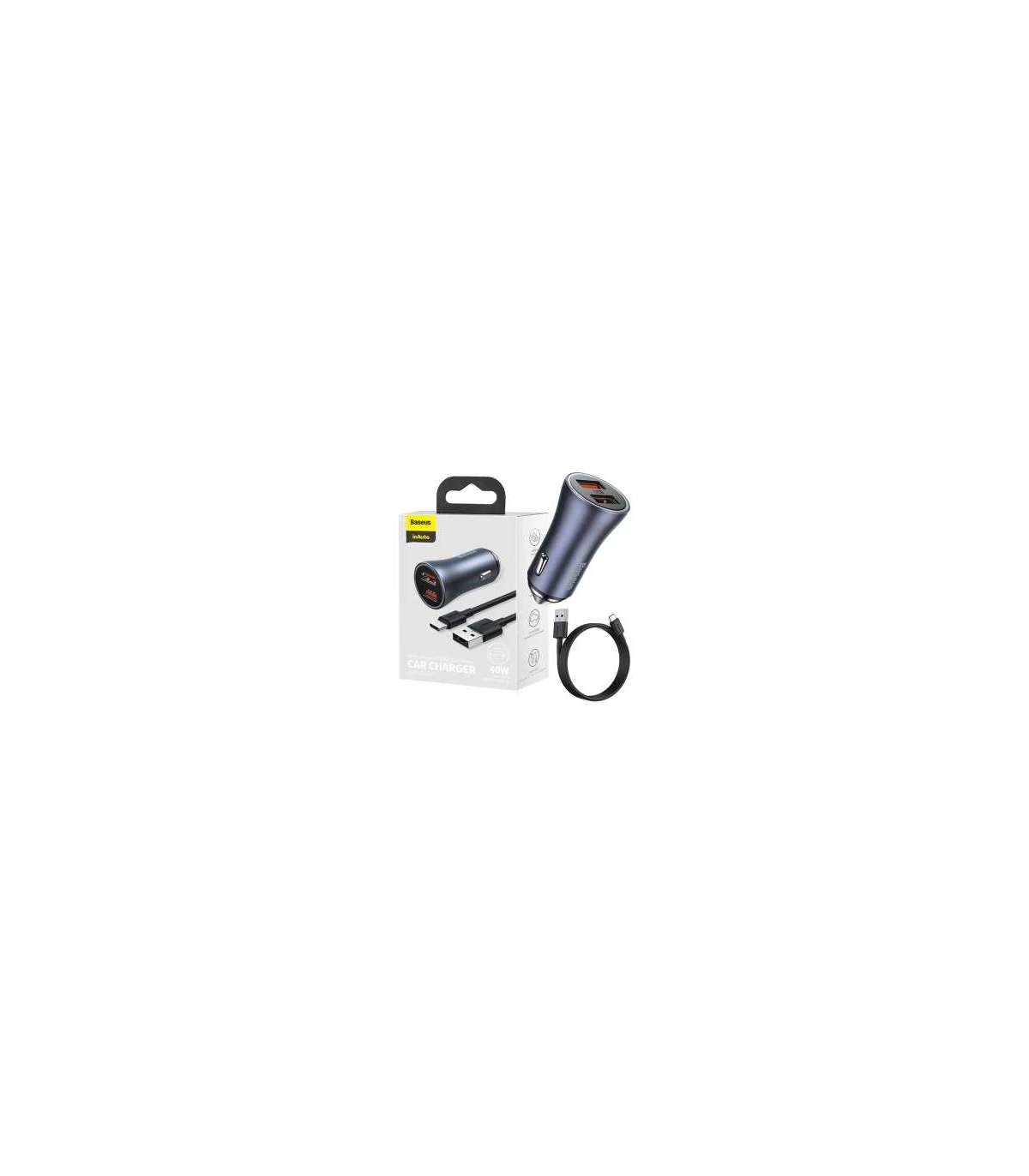 Baseus Golden Contactor Pro car charger, 2x USB, 40W (gray) + USB to USB-C cable 1m (black).