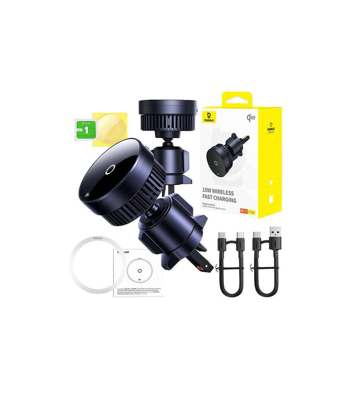 The Baseus MagPro holder offers 15W max wireless charging, so you don't have to wait too long until your gear is ready to go. What's more, it's compatible with both iOS and Android, and mounting the mount won't be a problem. In addition, special hooks provide stability and at the same time protect the ventilation grille from damage.