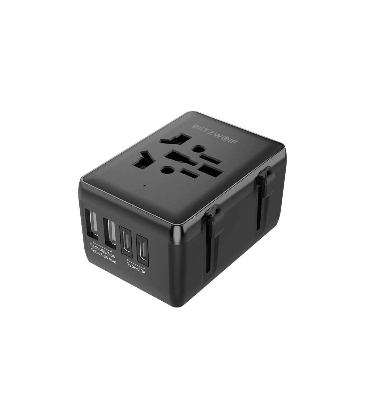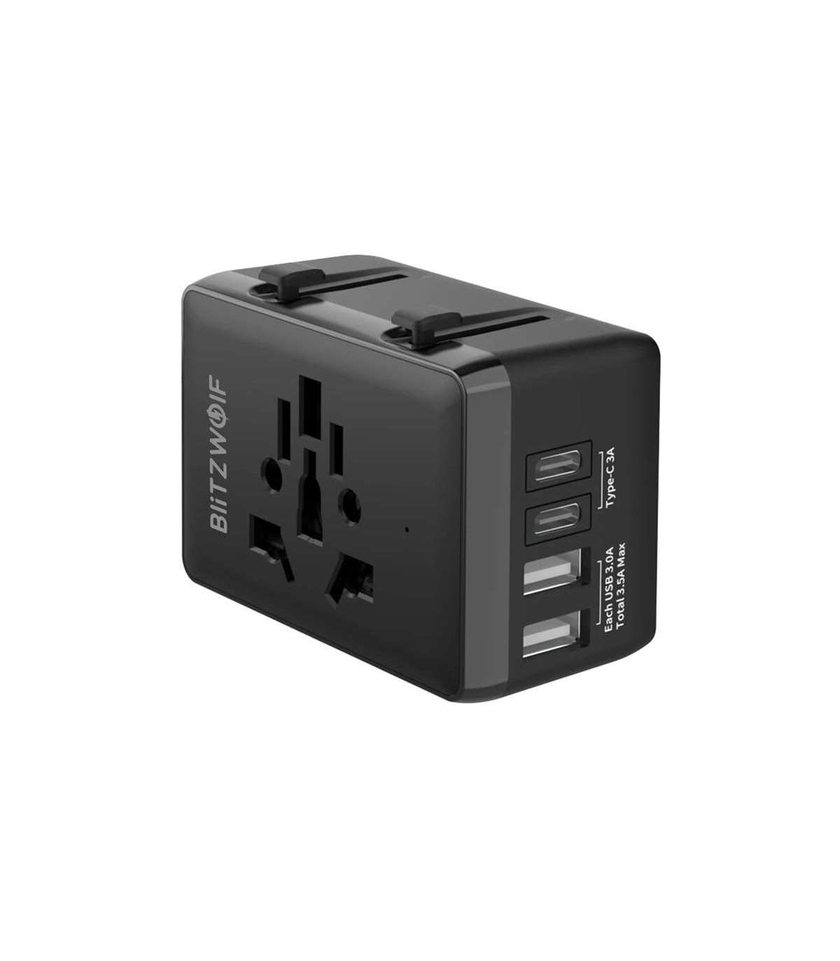 The BlitzWolf BW-TA1 travel adapter is an essential gadget for frequent world travelers. With support for electrical standards in the US, UK, Europe, Australia and many other countries, it provides the ability to charge devices virtually anywhere. With its compact dimensions (72 × 50 × 39 mm) and light weight of 109 g, the adapter will easily fit into any bag or backpack without taking up valuable luggage space.