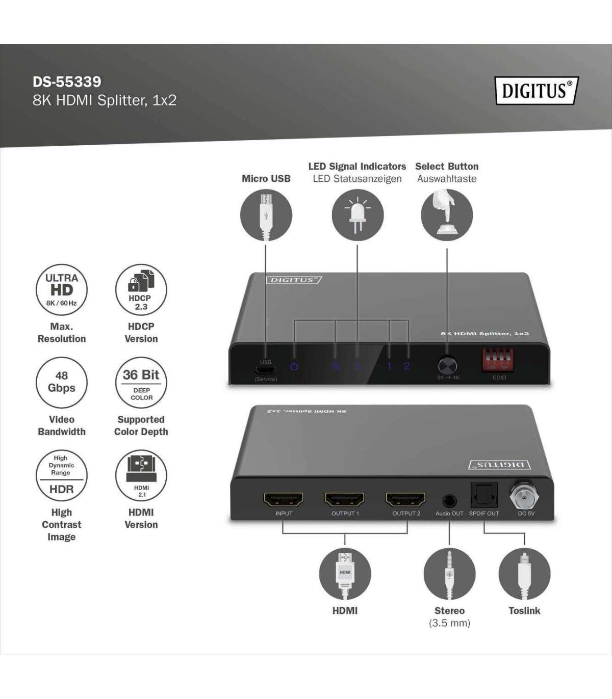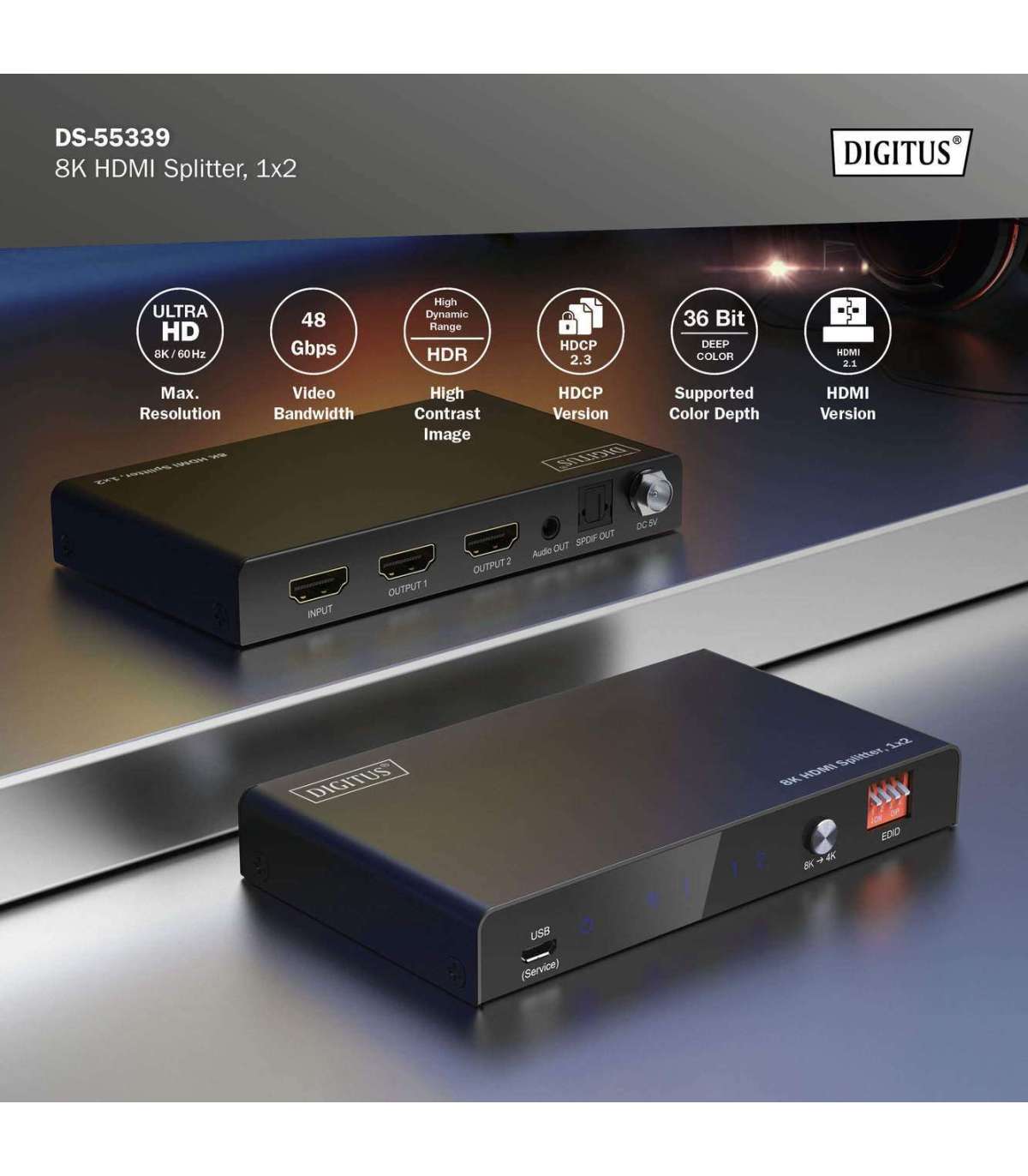 Digitus 8K HDMI Splitter, 1x2 | DS-55339 | Black