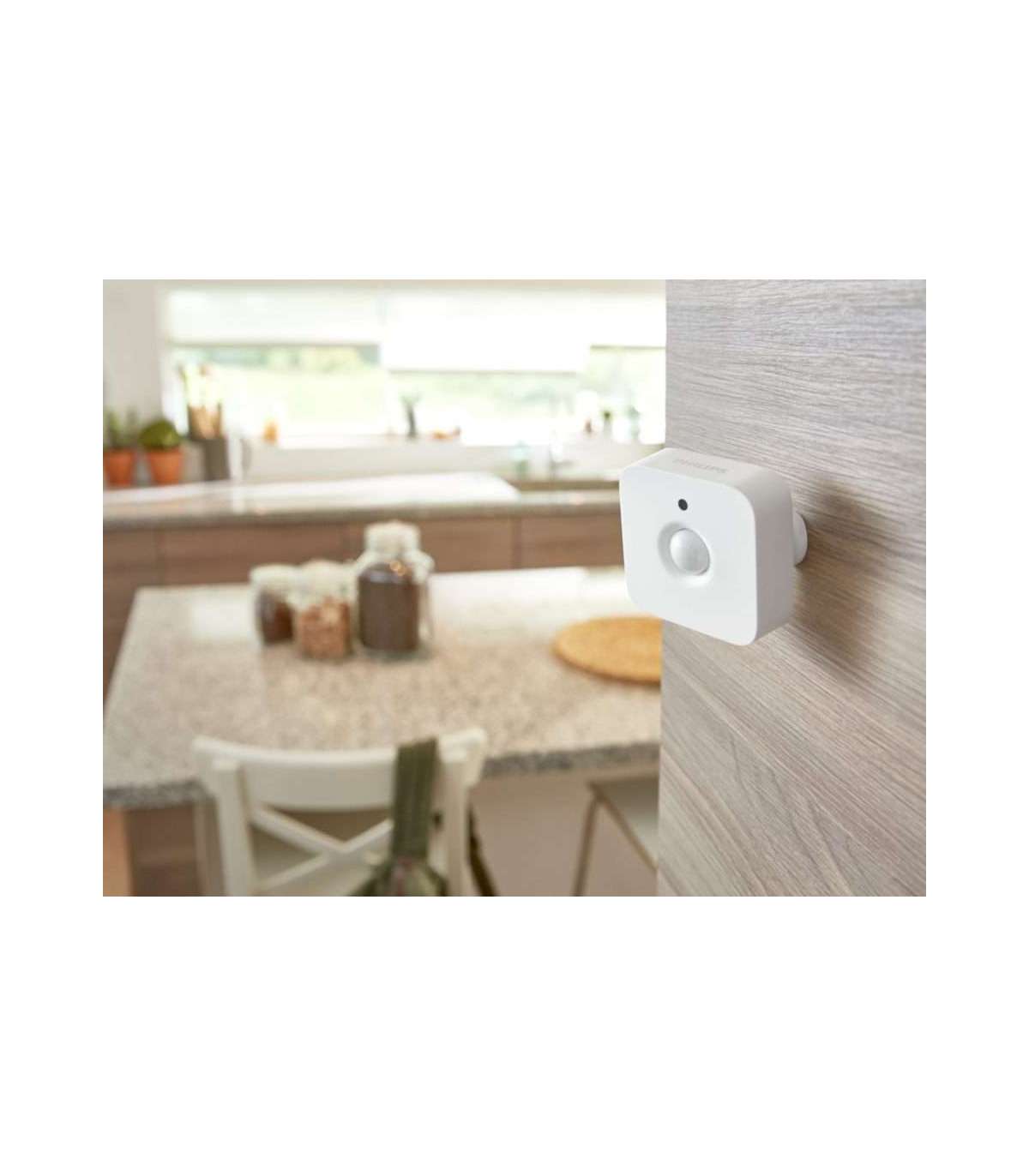 - Trigger your smart lights with movement. The battery-powered Hue motion sensor can be easily installed anywhere in your home