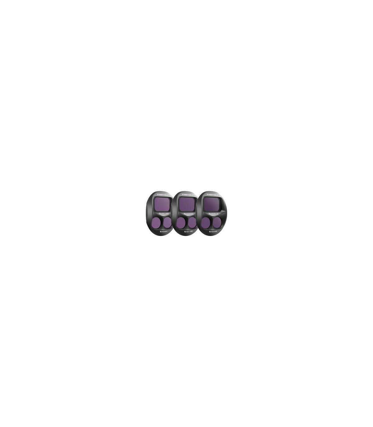Three dual ND filters - ND128/ND64, ND256/ND128 and ND512/ND256 - are included to provide a wide range of light reduction depending on lighting conditions. Specifically designed for the dual focal lengths of the DJI Mavic 4 Pro drone, each filter offers fine-tuned exposure for different apertures and focal lengths.