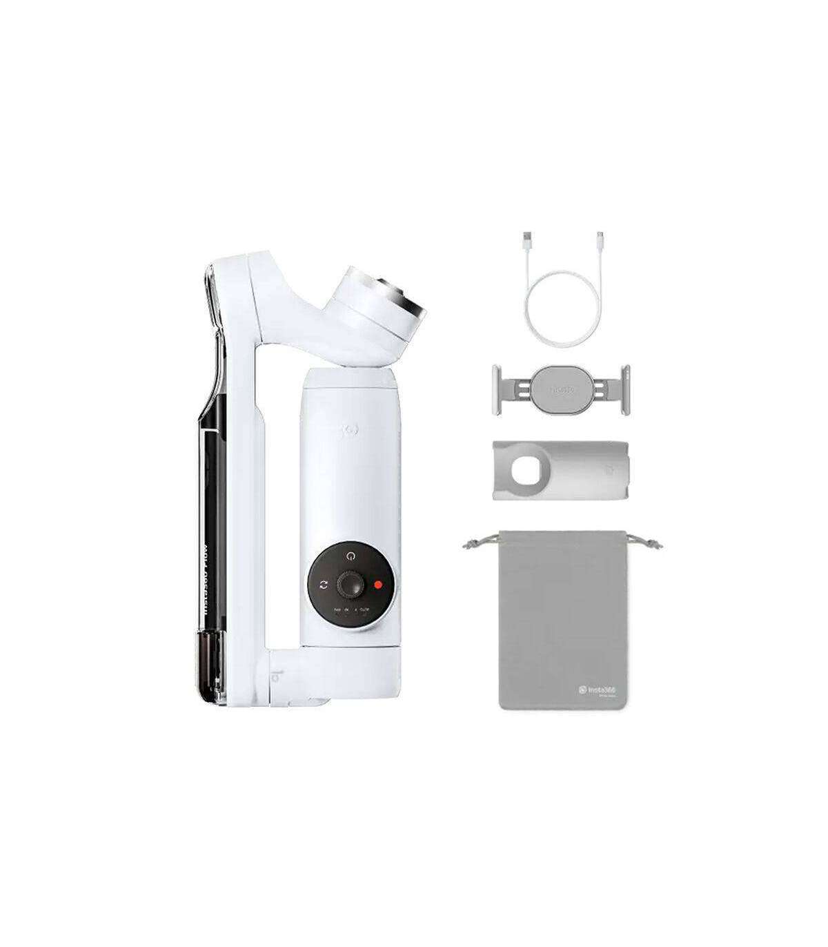Create even better video footage with your phone. The Insta360 Flow is an innovative smartphone gimbal that offers 3-axis stabilisation, advanced AI tracking technology and a host of smart features. With a powerful 2900mAh battery, its runtime reaches up to 12 hours. The device also has a built-in selfie stick and tripod, making it perfect for a variety of scenarios. The stabiliser can also act as a powerbank. The Creator Kit also includes accessories such as additional cables, a carry bag and spotlight.
