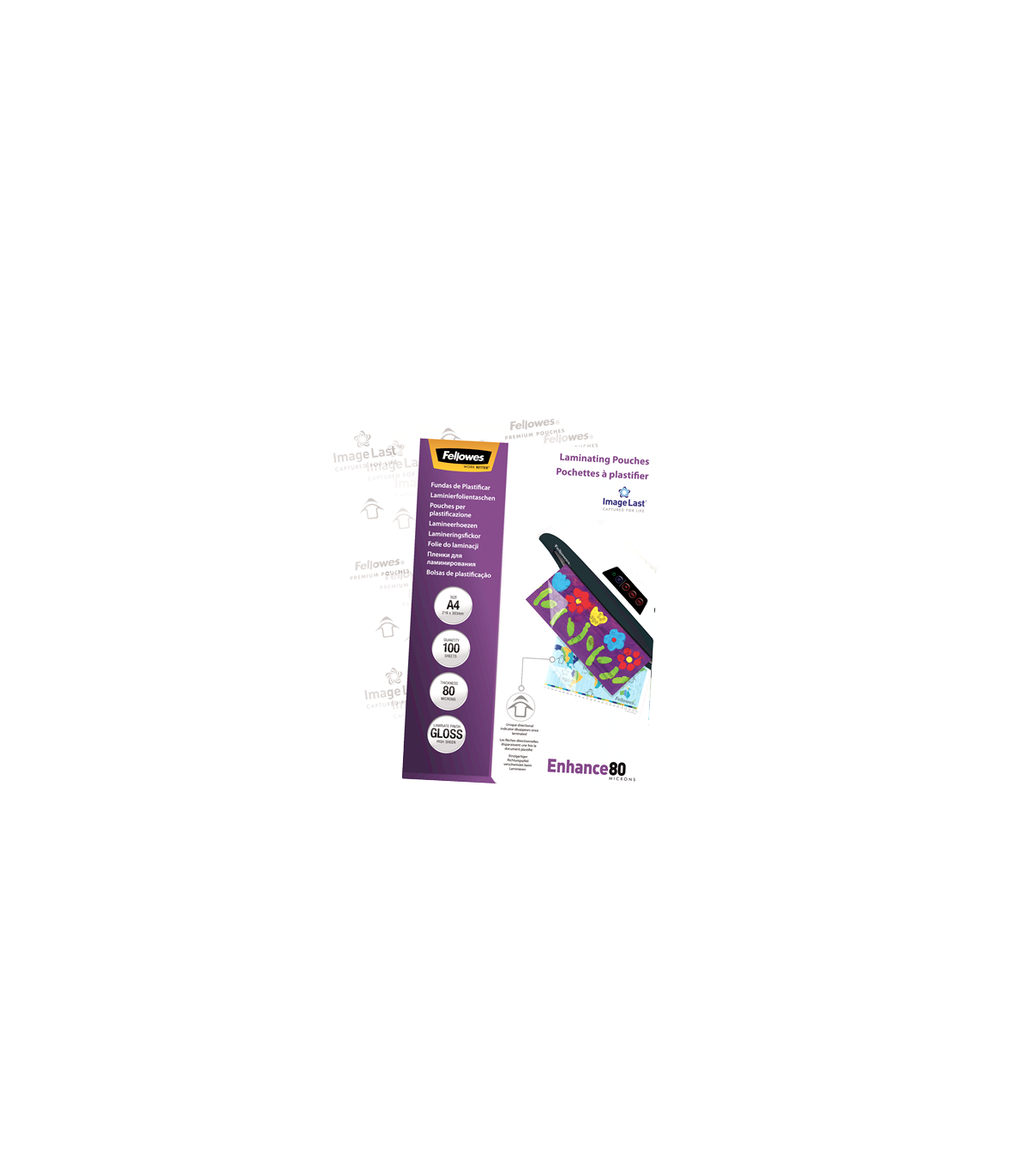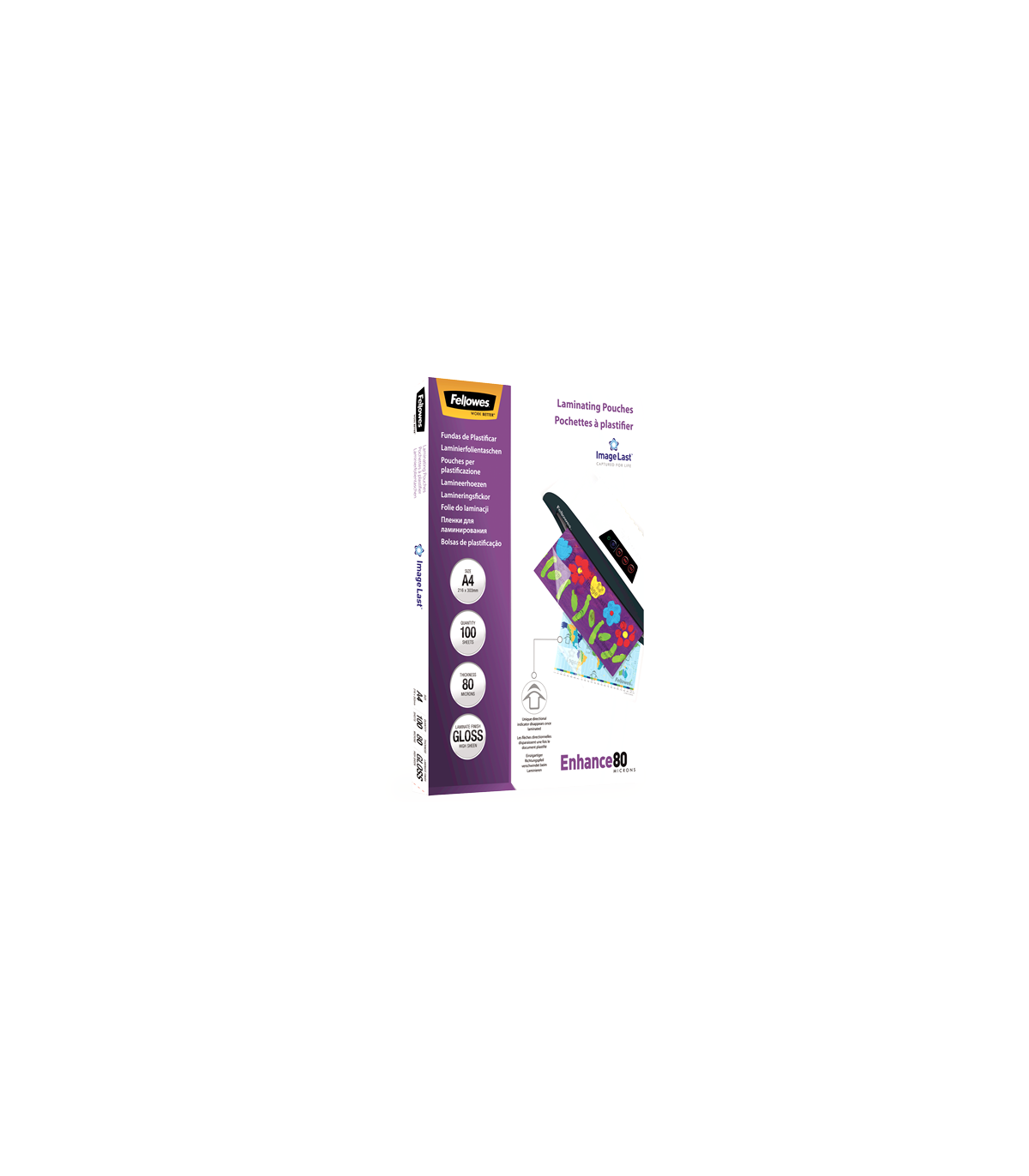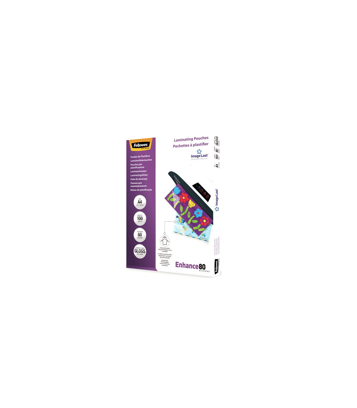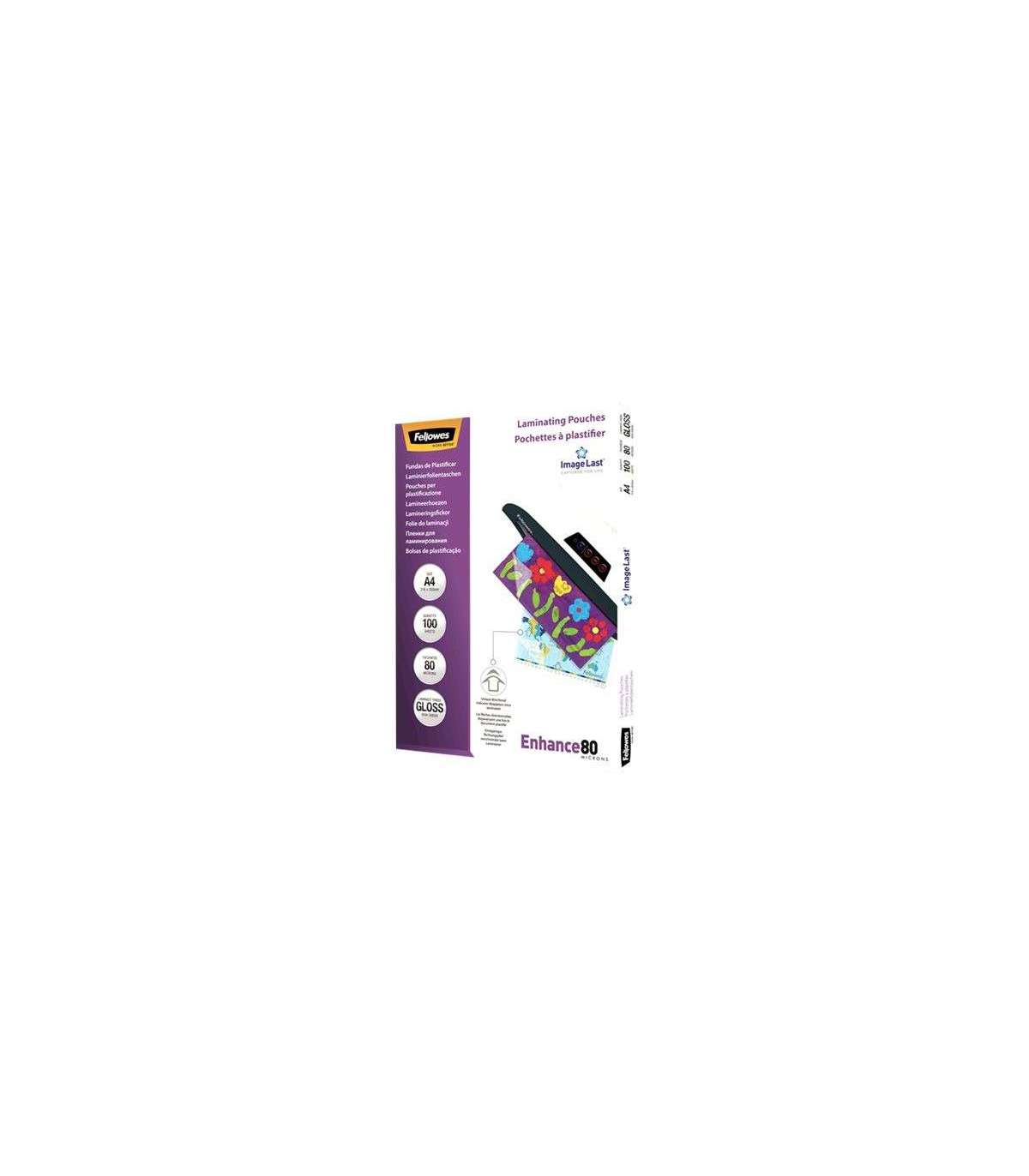 Fellowes | Laminating Pouch PREMIUM | A4 | Clear | Enhance 80 Micron thickness, 216x303 mm - A4, 100 pcs; Unique directional arrow quality mark disappears when laminated.