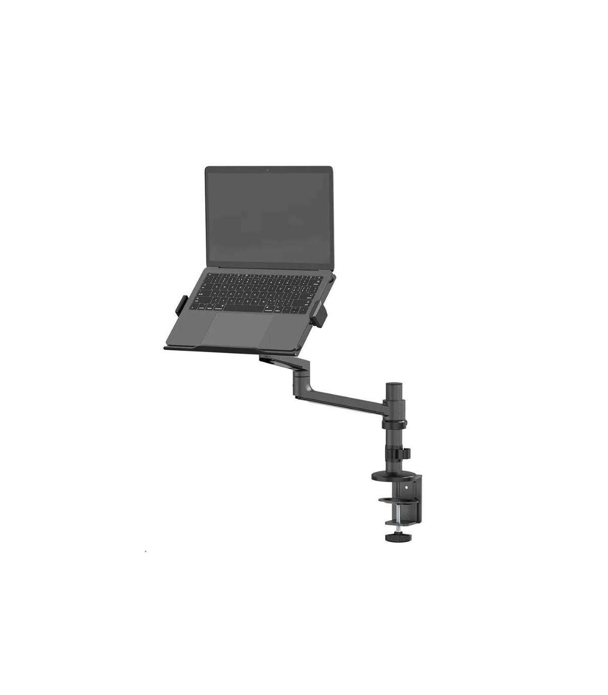 The Neomounts DS20-425BL1 NEXT Lite is a full motion desk mount for laptops up to 17,3" with a maximum weight capacity of 5 kg. The versatile tilt (120°), rotate (360°) and swivel (180°) technology allows you to adjust the mount to the optimal height and viewing angle for your laptop. Additionally, the mount has manual height and depth adjustment to create the perfect working position. Due to the short T-Rex® upper arm of the NEXT Lite, only minimal depth is required when placed near a wall or separation panel. This allows the screen to be positioned further away from the user which is better for the eyes and also leaves more space for good ergonomic working posture. The smart internal cable management system ensures orderly routing of the cables. The DS20-425BL1 is equipped with an Easy-release VESA system for easy installation and comes with both desk clamp and grommet.