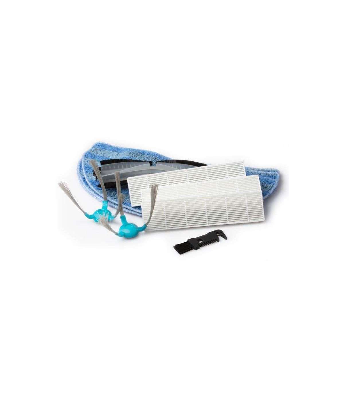1 pair of side brushes, 1 center brush, 3 wiping cloths, 3 sets of hepa filters, 1 cleaning device