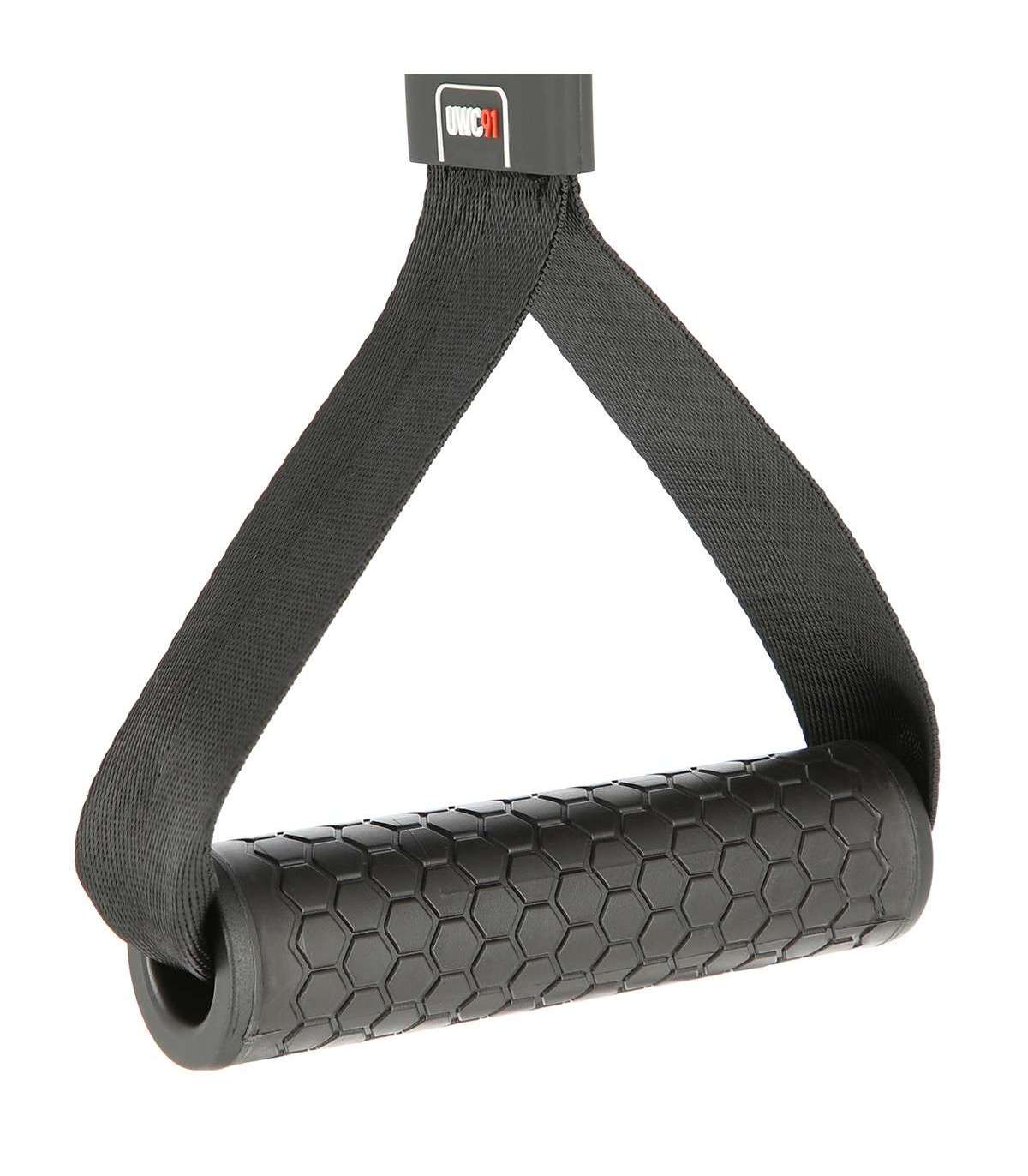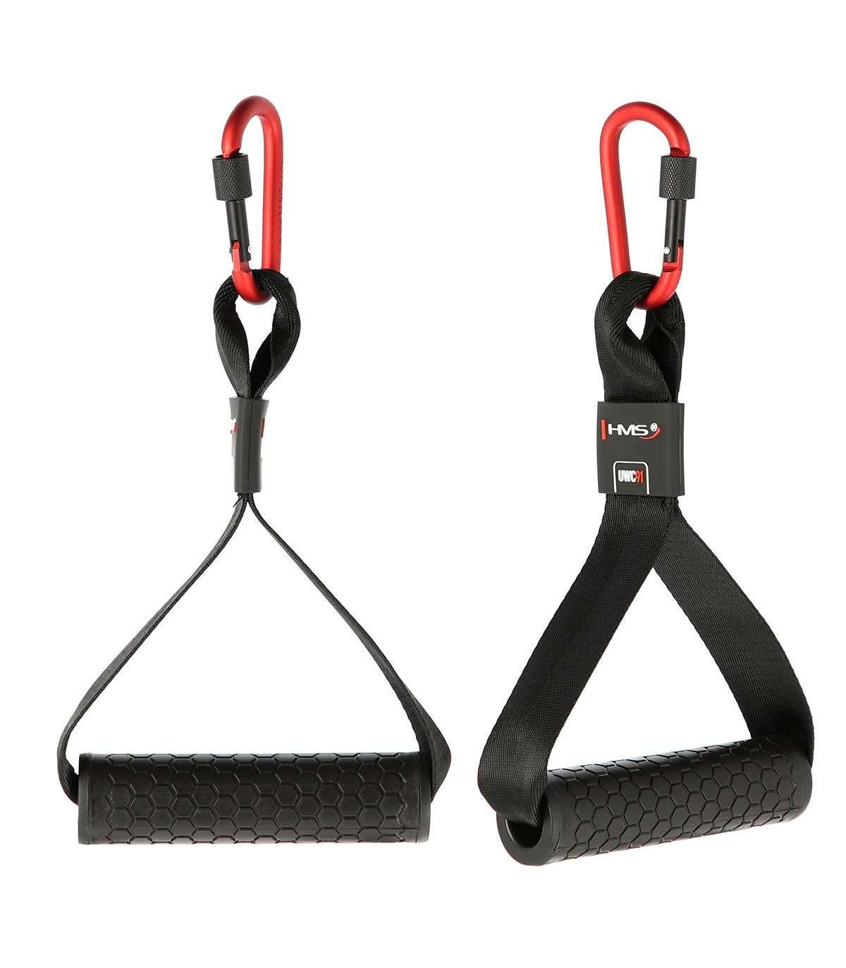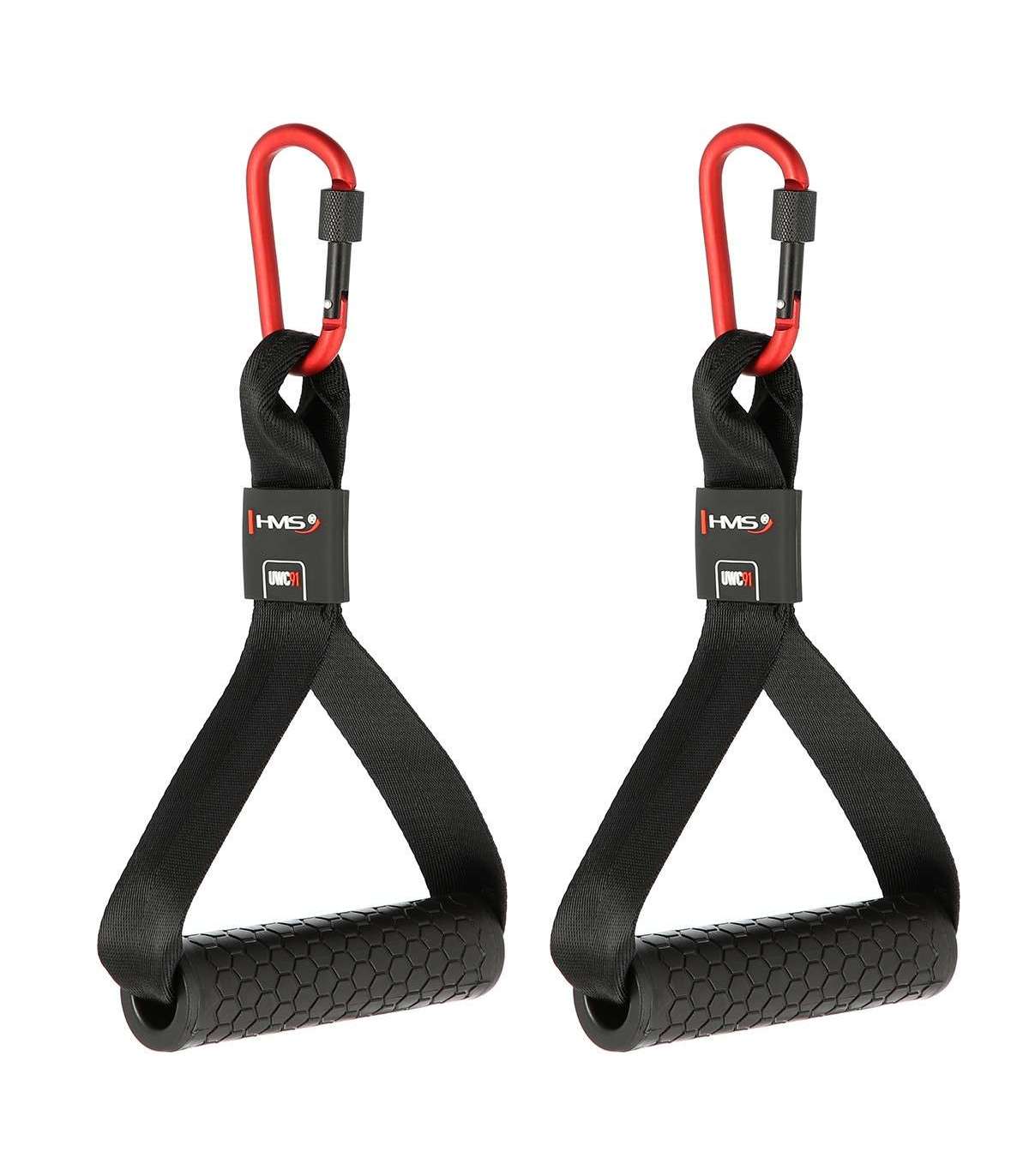 UWC91 HMS is a double handle designed designed for training involving the top or the bottom pulley, or attaching training bands. You can use it for a whole range of exercises of different upper body muscle groups, starting from small groups like biceps and triceps, through the shoulder muscles and finally to the back and chest.The handles covering material warrants the comfort of exercises by protecting hands from corns. Additionally, perfectly adjusted diameter of the handle automatically forces tighter gripping, which makes the forearm muscles are strongly involved into the exercise. High quality straps, which the handles are attached to the lift, enable significant loads.UWC91 HMS is perfect for muscles growth and for stretching them in combination with training bands.Designed for top pulley, bottom pulley and exercise bandsSpecification:Material: aluminum, nylonLength of the grip part (mm): 130Diameter of the grip part (mm) : 33Handle: rubberizedDimensions:length (mm): 45width (mm): 130height (mm): 270Maximal load:strap (kg): 290rubber handle (kg): 220snap hook (kg): 70The set includes: 2 pcs.Remarks:1-year warrantyImporter: Abisal Ltd. | Poland | 41-807 Zabrze | Pyskowicka Street 17 | e-mail: abisal@abisal.plAbisal Ltd.. declares that the products sold by the company are safe and meet the requirements contained in the Act on General Product Safety of December 12, 2003. (Journal of Laws of December 31, 2003)