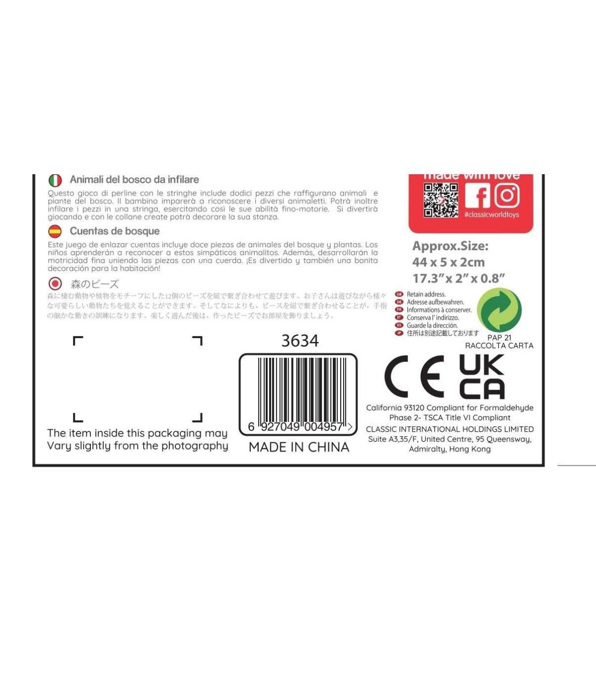 CLASSIC WORLD Деревянные блоки для нанизывания — Лесные животные, 13 шт.